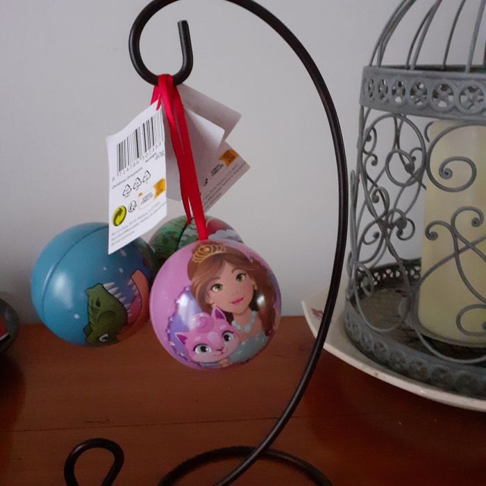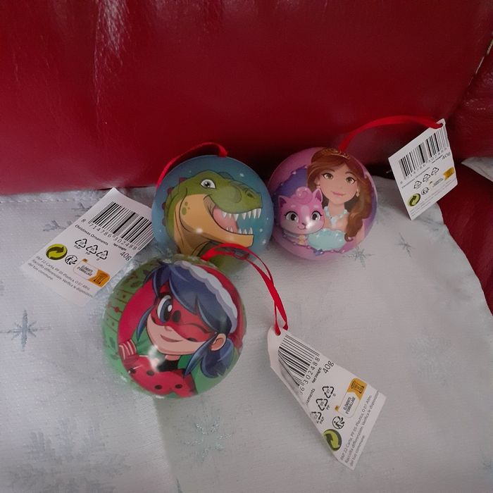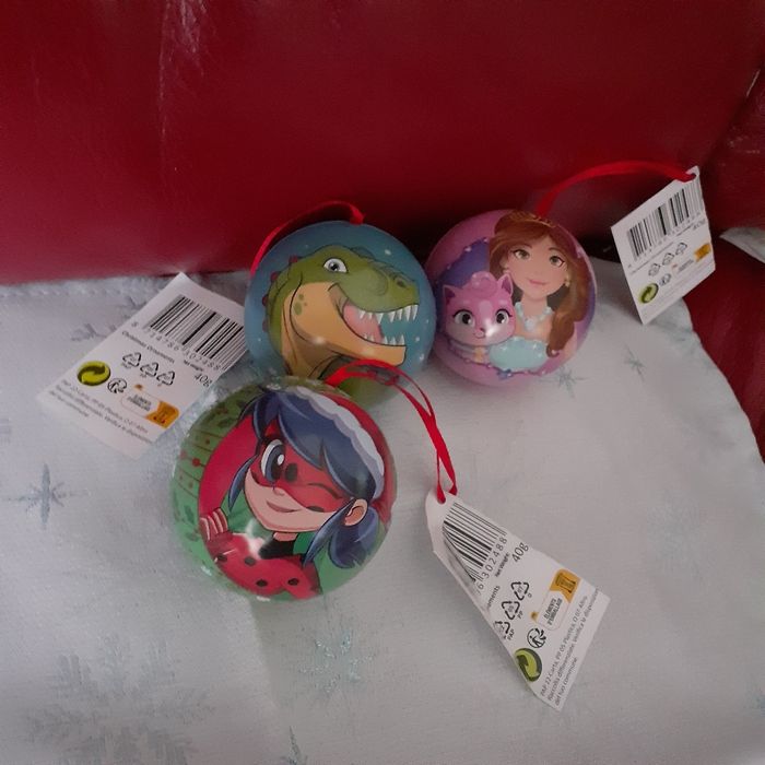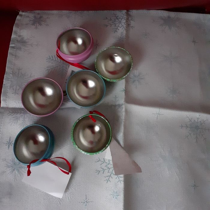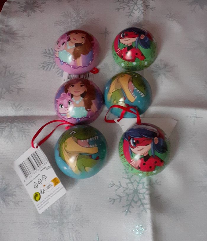 Articles neufs,encore étiquetés. Lot de 3 boules en métal; 3 motifs différents. Chaque boule à le même motif en recto-verso. Lien de suspension en ruban rouge. Les boules peuvent être remplies; intérieur en métal gris. Diamètre intérieur de 5,4 cm // voir photos pour détails