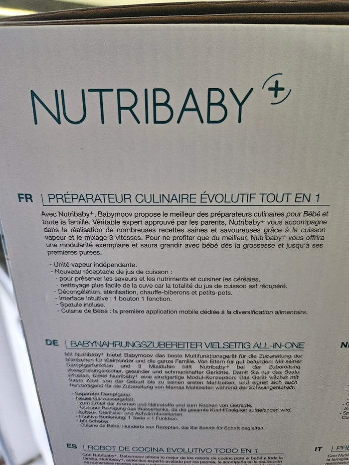 Robot Nutribaby+ de la marque BabyMoov. Utilisé une seule fois pour vérifier le bon fonctionnement. Envoyé dans son carton.