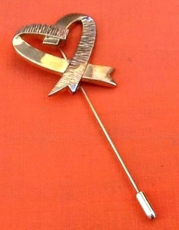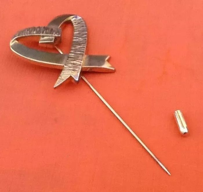 Broche fibule Arthus Bertrand Bijou " Coeur Passion " Doré à l' or 24 Carats Inspirée de la campagne contre le cancer du sein L' Oréal Technique Professionnelle Longueur : 95mm Poids : 16grs