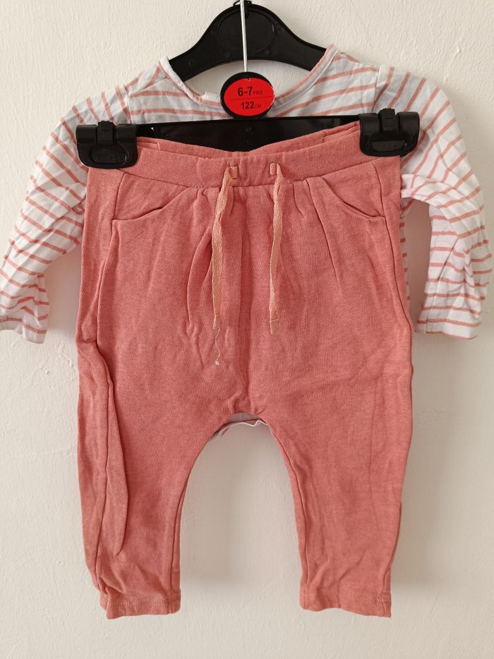 Lot de deux ensembles Pantalon et t-shirt (dont 1 avec une légère trace au niveau du col) Taille 12 mois Tape à l'oeil