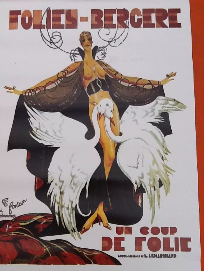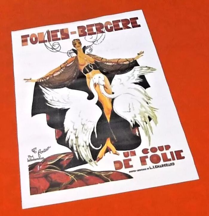 (article vendu en l' état, état d' usage nous précisons scotch au dos voir toutes les photos). Années 1980 Affiche Folies-Bergère Un coup de folie Léo Fontan Paul Saltenhammer Hauteur : 700mm Largeur : 500mm Poids : 90grs
