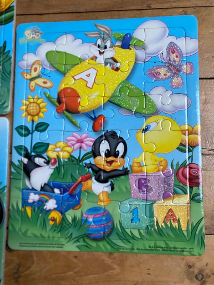 Lot de 3 puzzles Titi Warner Bros looney tunes Gros minet bugs Bunny cubes ballon fleur abeille papillon escargot coccinelle canard duck L’un d’eux est à paillettes Dès 3 ans