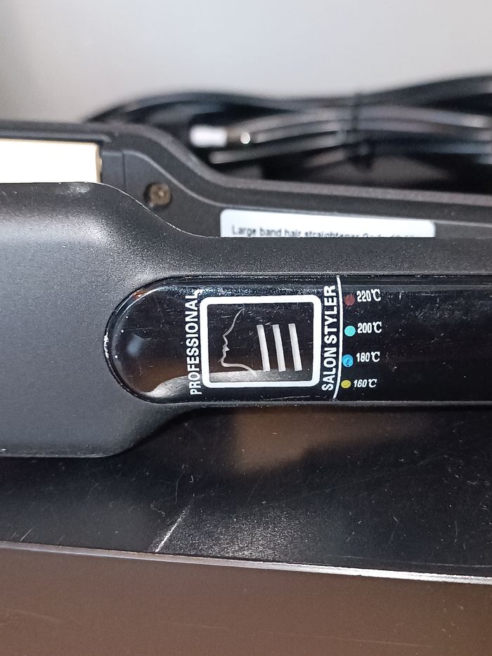 NEUF Plaque à cheveux à bande large avec revêtement en céramique. 4 températures : 160 - 180 - 200 - 220 Vendu avec sa boîte ( un peu abîmée)