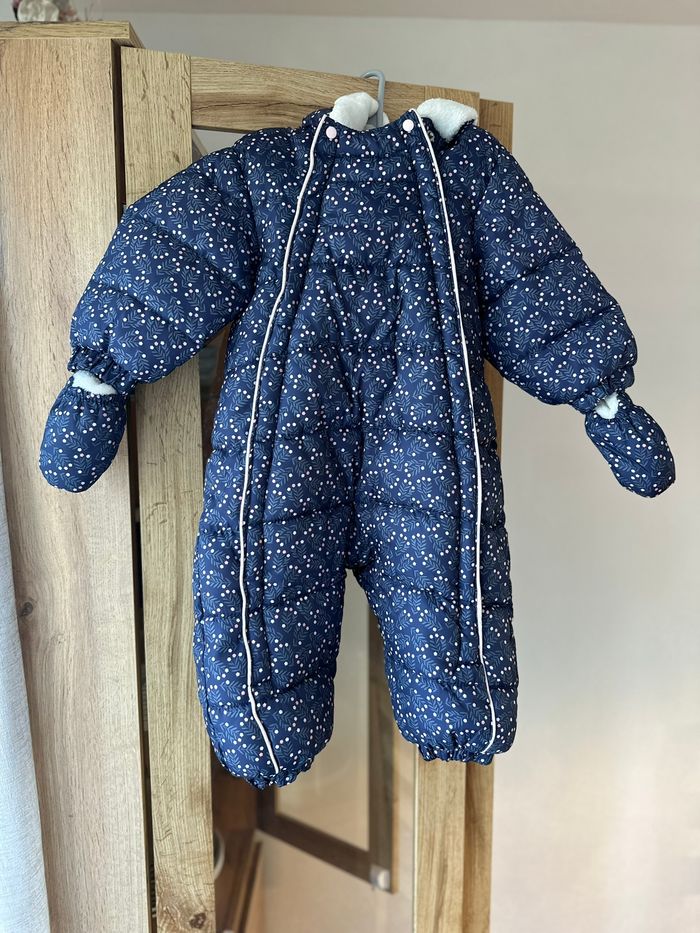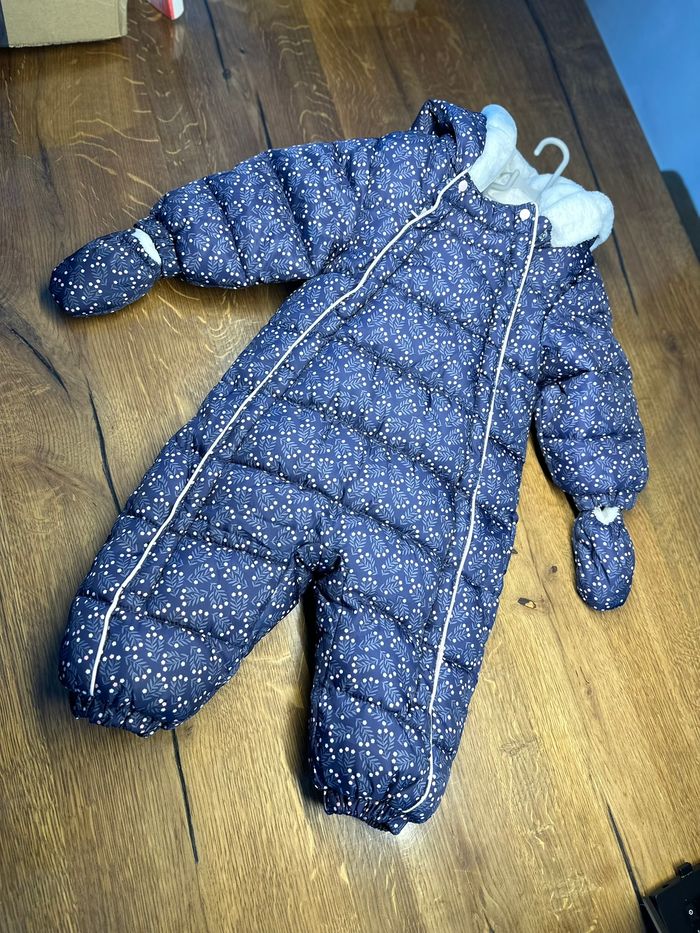 Joli combinaison d'hiver toute chaude comme neuve Jamais portée Imperméable, tient bien chaud + moufles 12/18 mois. 74-80 cm