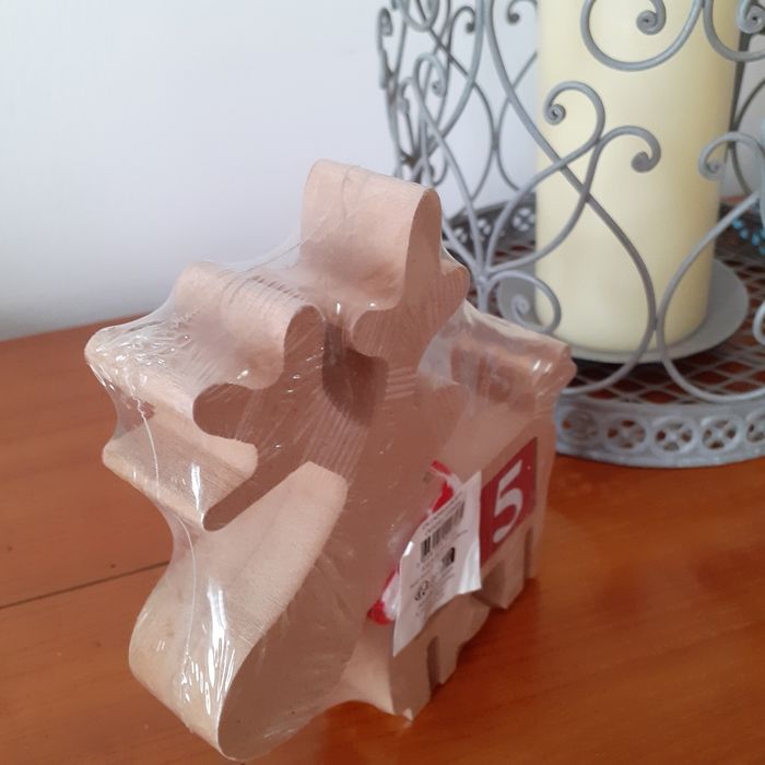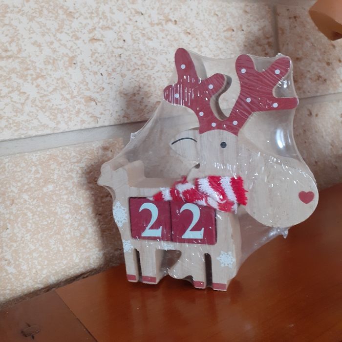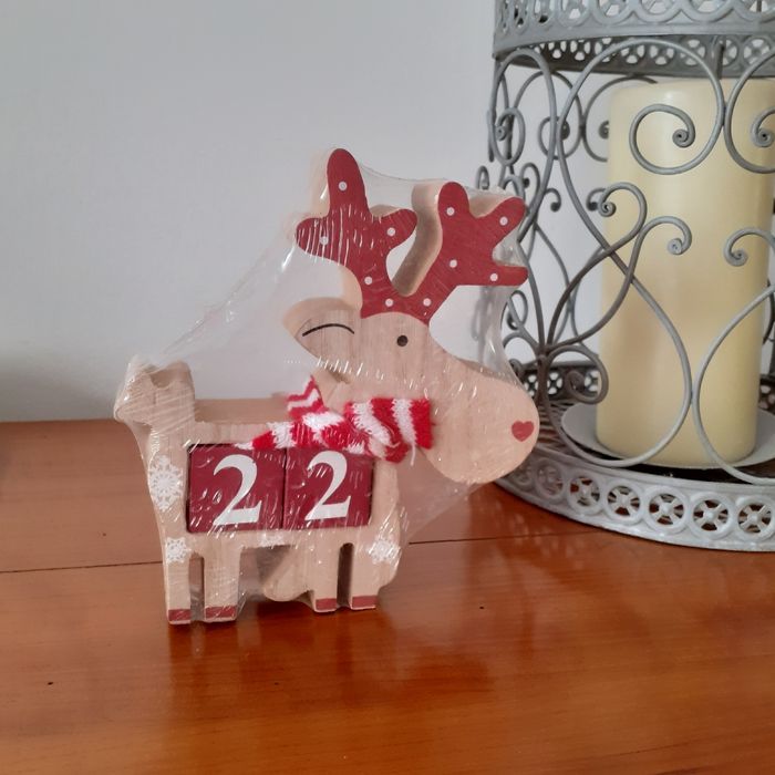 Article Neuf, sous emballage d'origine. Renne / Calendrier en bois massif. Deux cubes avec des chiffres, à interchanger pour mettre la date du jour. Hauteur maxi de 16 cm ; largeur maxi de 14,5 cm ; épaisseur de 3 cm // voir photos pour détails