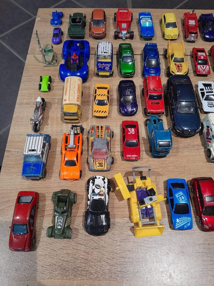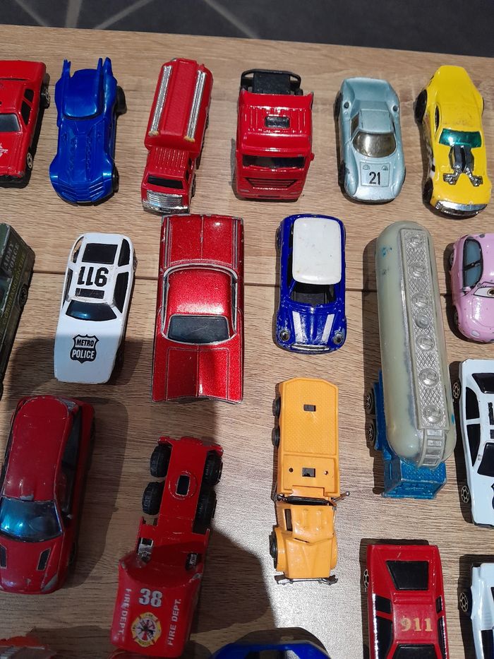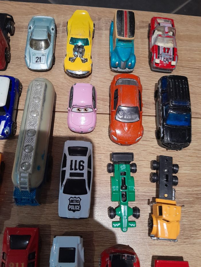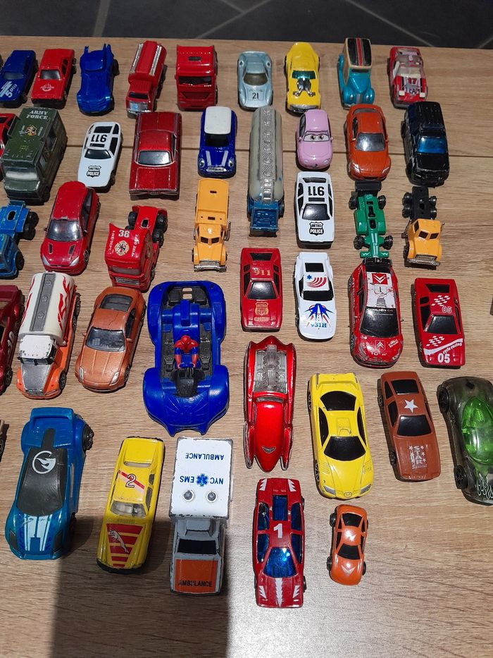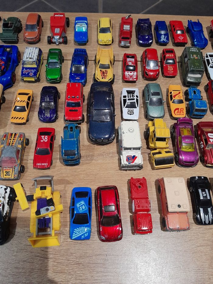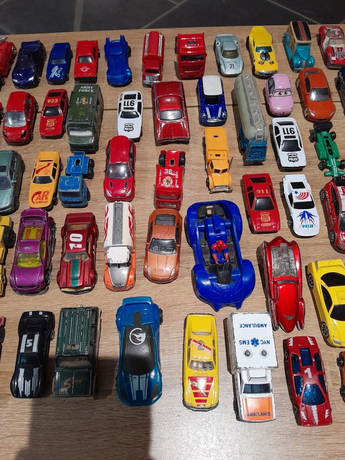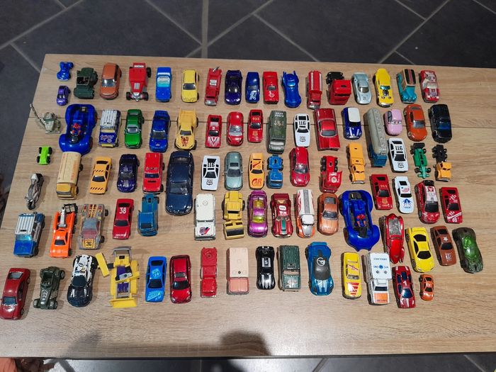 Lot de 89 véhicules voiture camion ect Bon état manque de la peinture sur certaines voir photo un peu de tout voiture, voiture encienne camion ect...