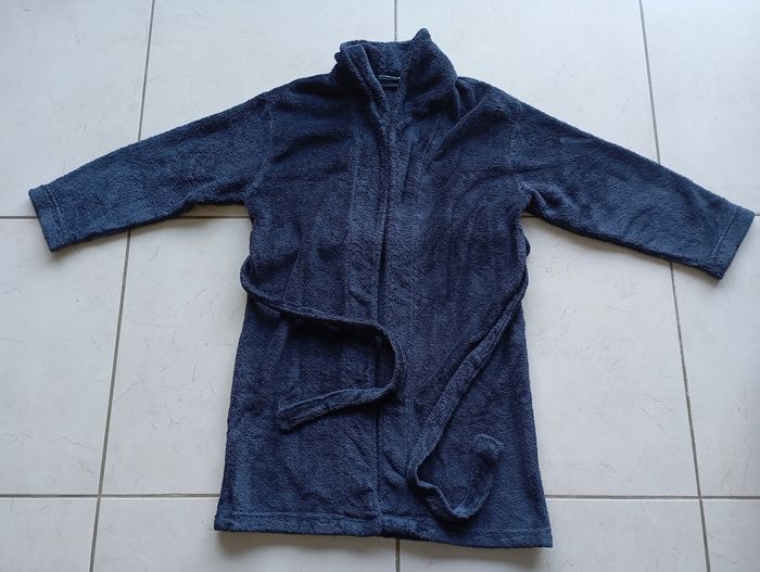 Robe de chambre peignoir 8 ans fille garçon bleu marine Fermeture cordon taille Très bon état toute douce toucher peluche Peut servir de peignoir aussitôt