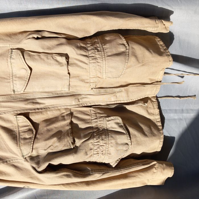veste avec col, zip et boutons pression avec rabat, boutons aux manches, 4 poches avec rabat, cordon de serrage à la taille et sur le bas de la veste, doublée, Composition 100% coton largeur épaules 36 cm - aisselles 69 cm longueur épaule-bas = 59 cm et aisselle-bas = 39 cm longueur manches 57 cm Article peu porté Possibilité d offre en lots. Envoi rapide et soigné