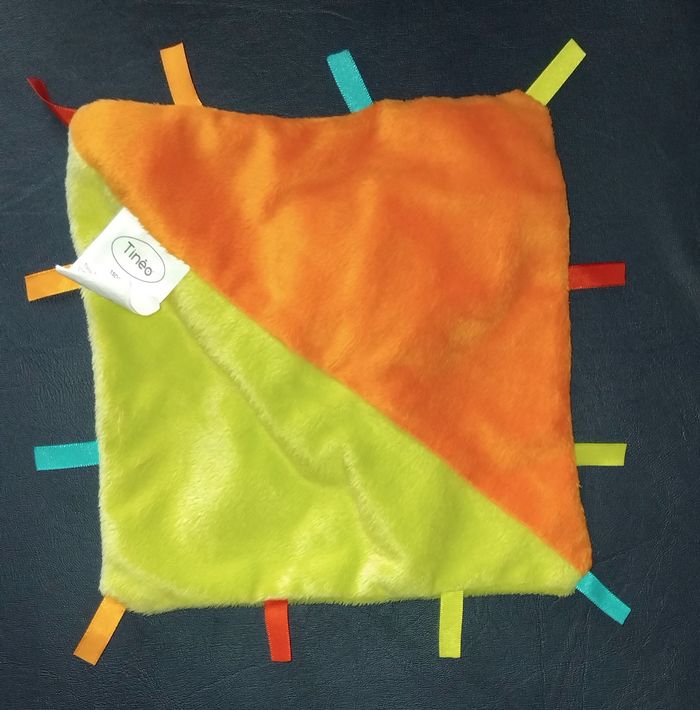Doudou carré plat ours orange et vert - Tineo - photo numéro 1