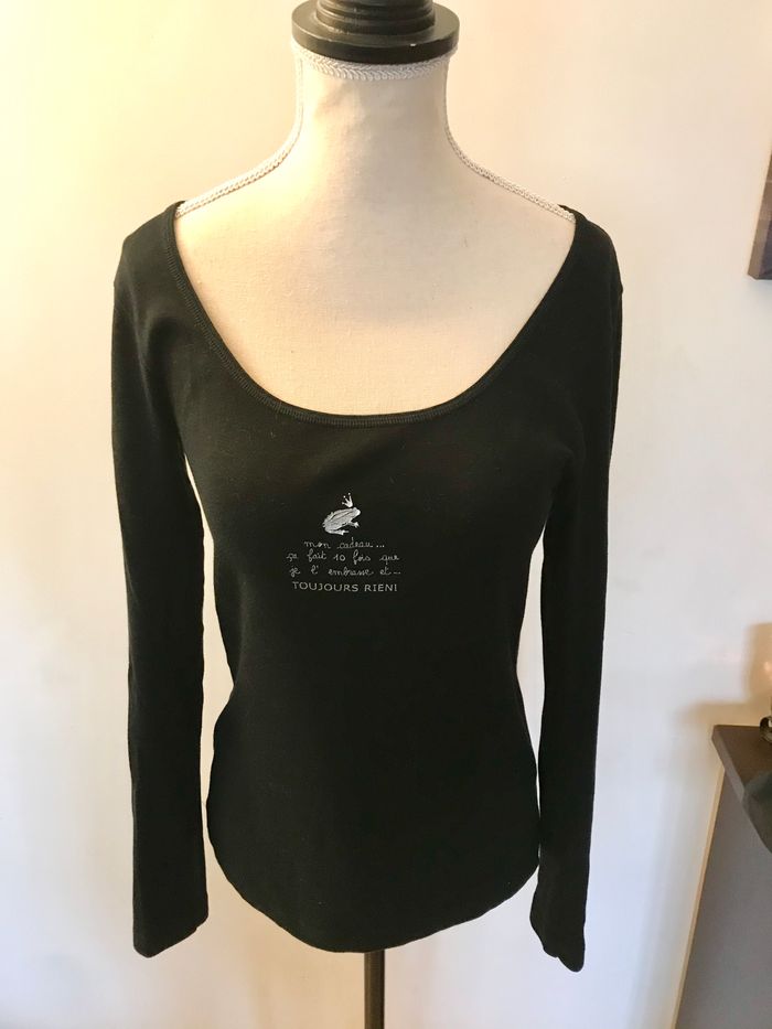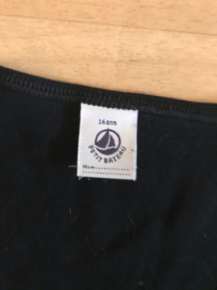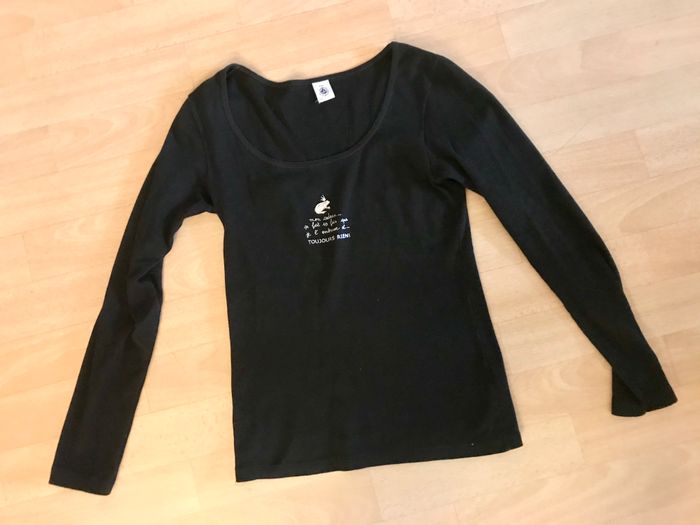 T-shirt fille taille 16 ans ou femme taille 36 Petit bateau Coloris noir et argenté Manches longues 100 % coton Très bon état