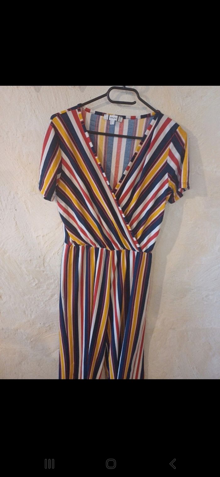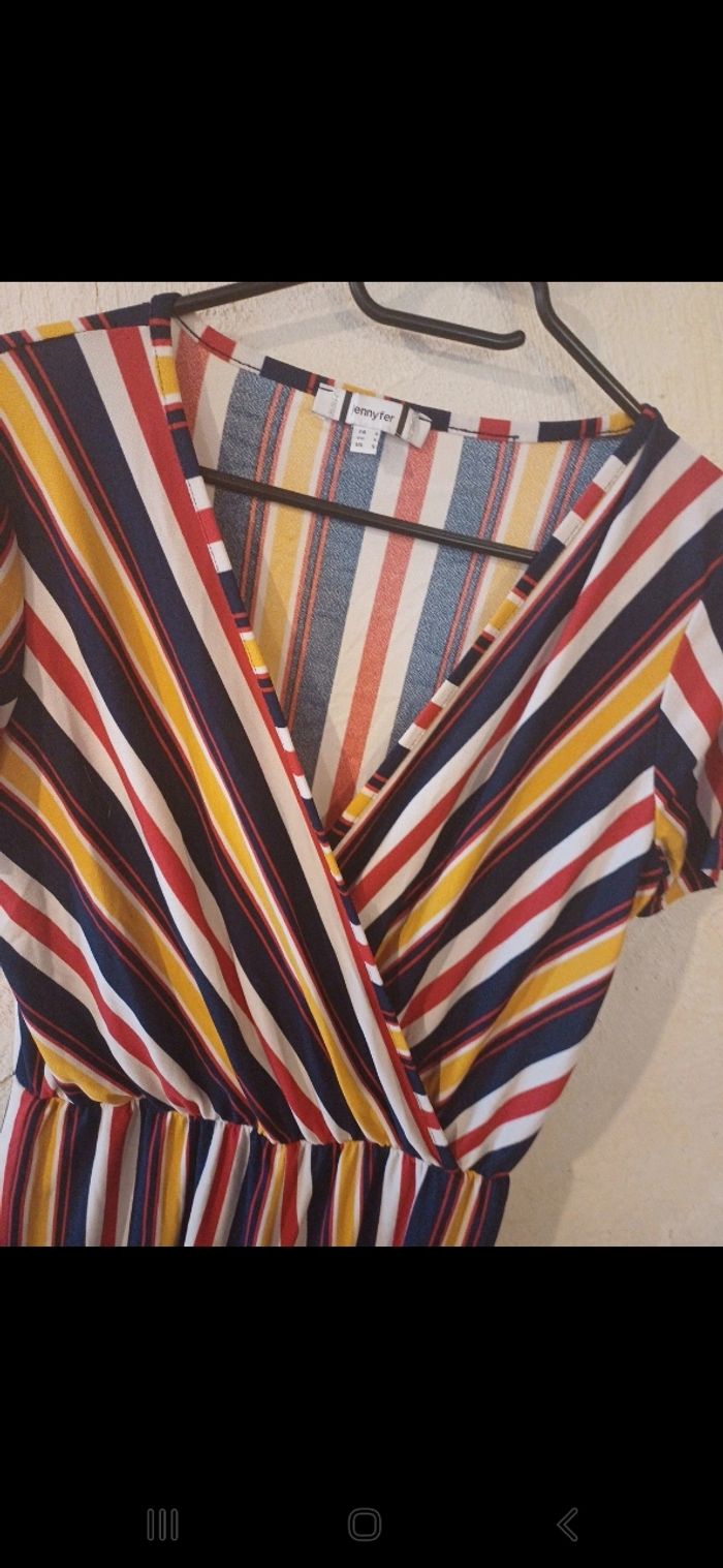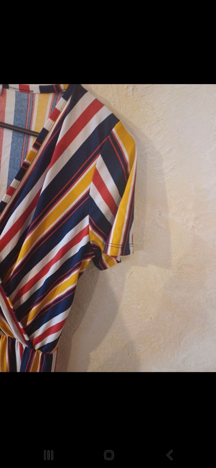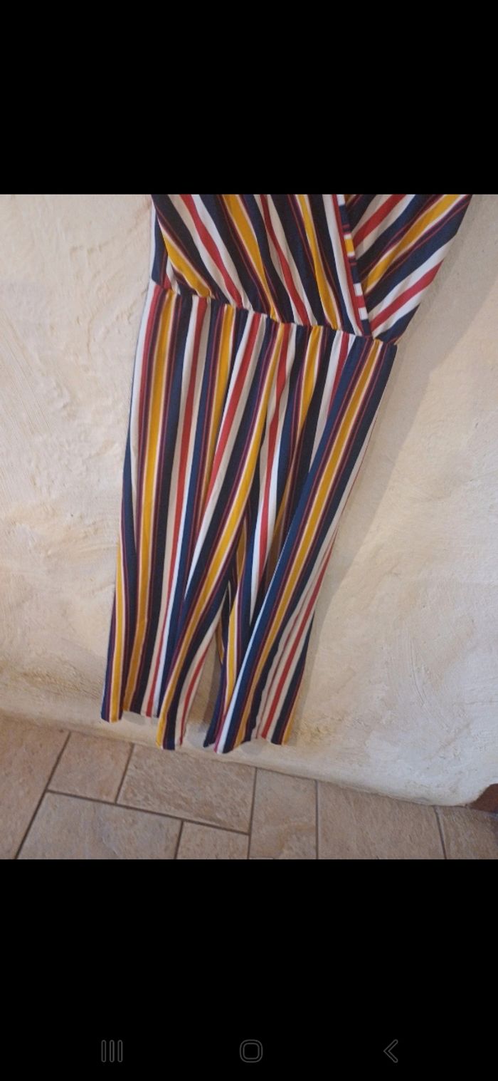 Jolie combinaison, manches courtes, colorée à rayures. Joli décolleté