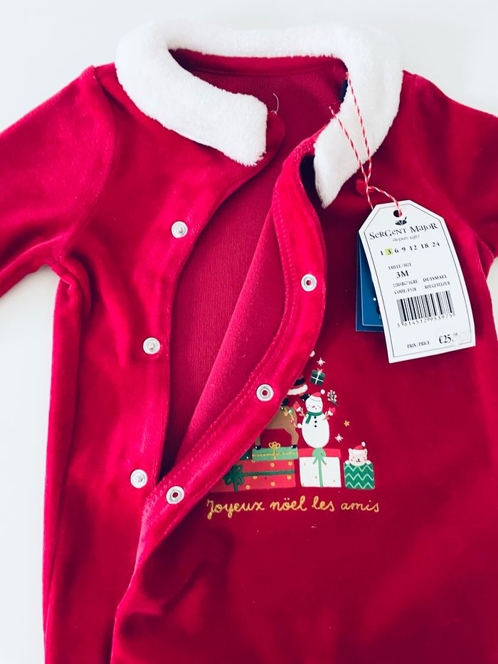 Magnifique pyjama de Noël en velours Sergent Major Taille 1 mois Article neuf avec étiquette