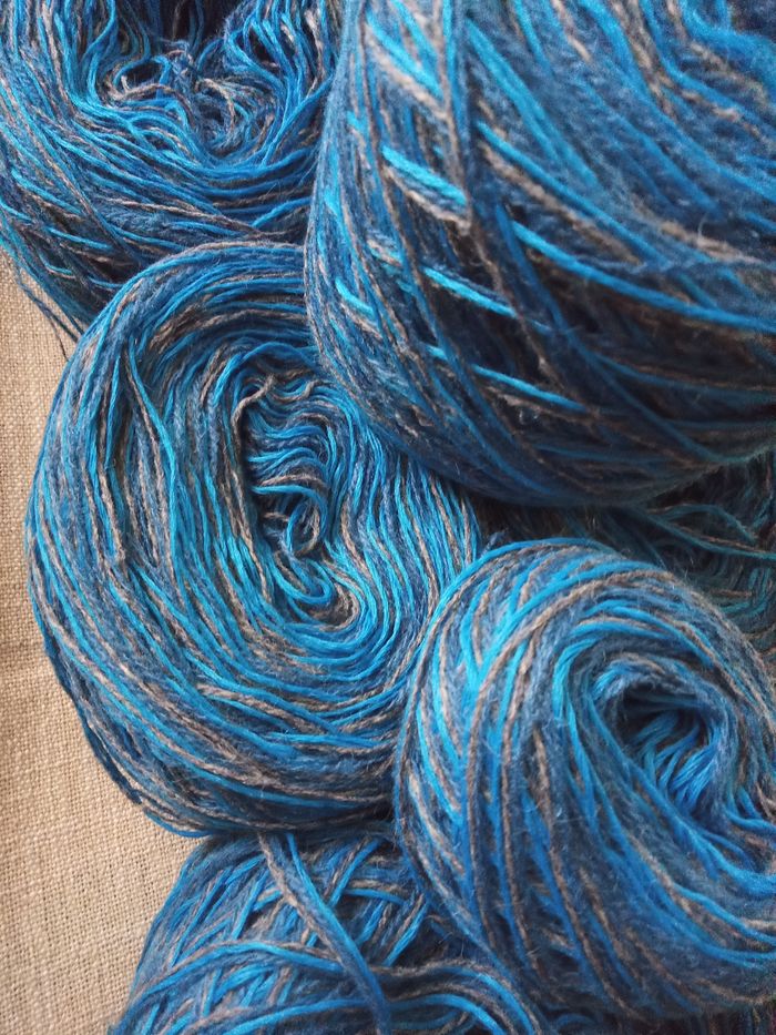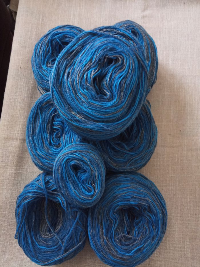 Lot de 8 Pelotes (620g) Couleur: Tons Bleus et Gris 3 fils simples de taille différente au total 620g Aiguilles N°2,5-3 environ Lot en parfait état