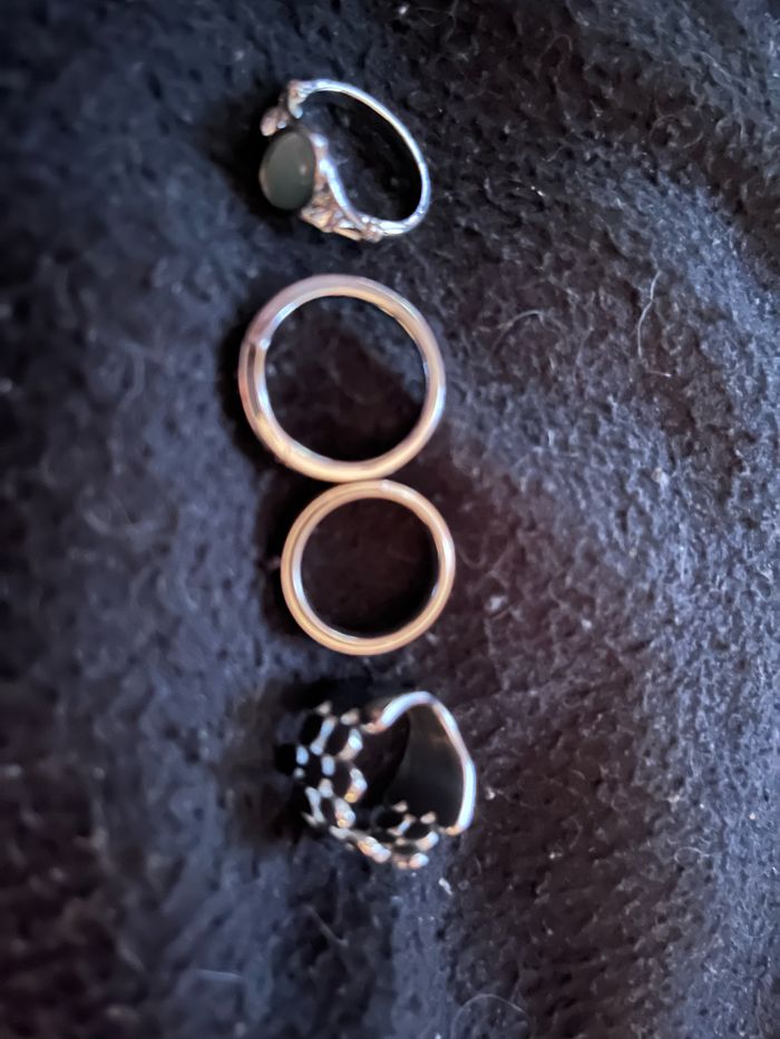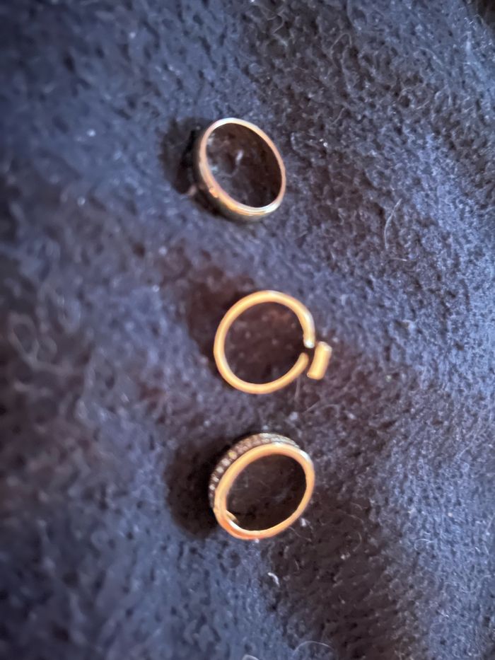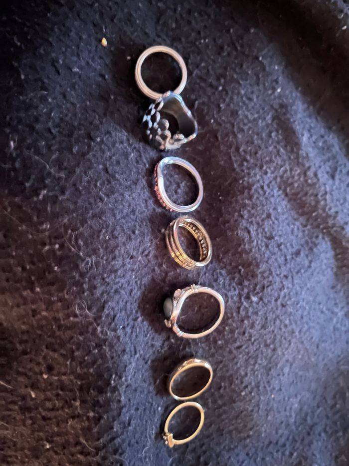 Lot de 7 bagues : 4 bagues couleur argenté : 2 tailles 18 et 2 tailles 14.93 3 bagues couleur doré : 2 tailles 14.93 et 1 taille 18.