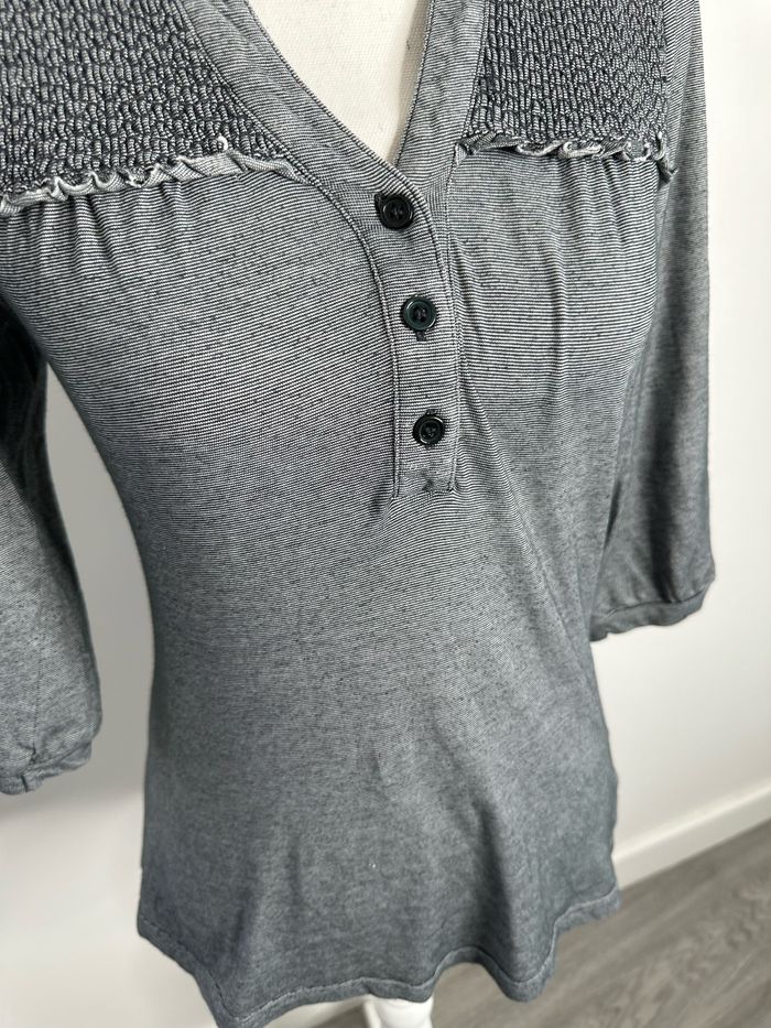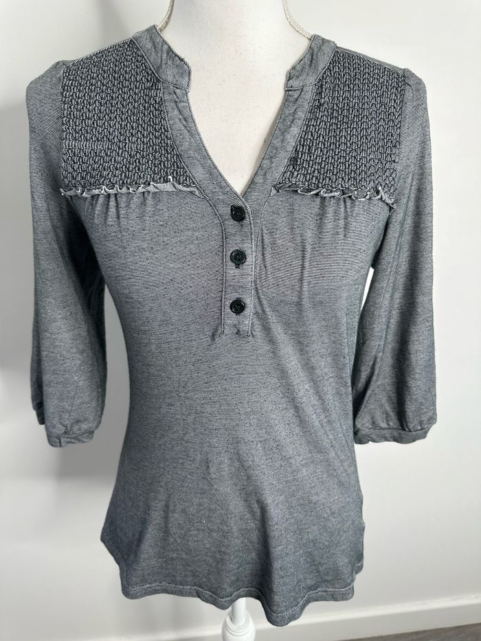 Blouse - Excellent état - Taille 36 équivalent S - Marque Phildar - Gris moucheté - Manches 3/4 - Tissus stretch - Coton et Nylon