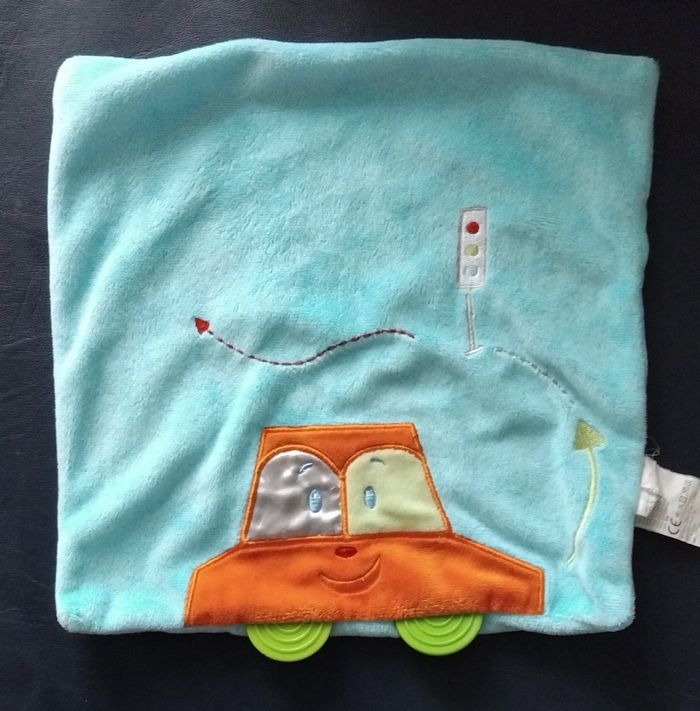 Doudou carré plat bleu voiture - roues dentitions - Influx - photo numéro 1