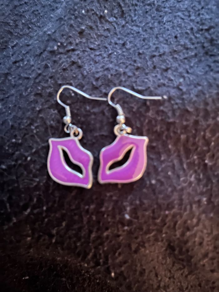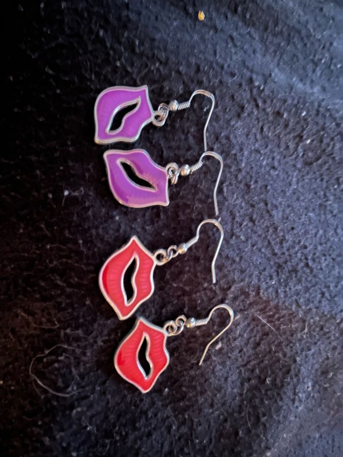 Lot de 2 paires de boucles d’oreilles en forme de boucles violet et rouge