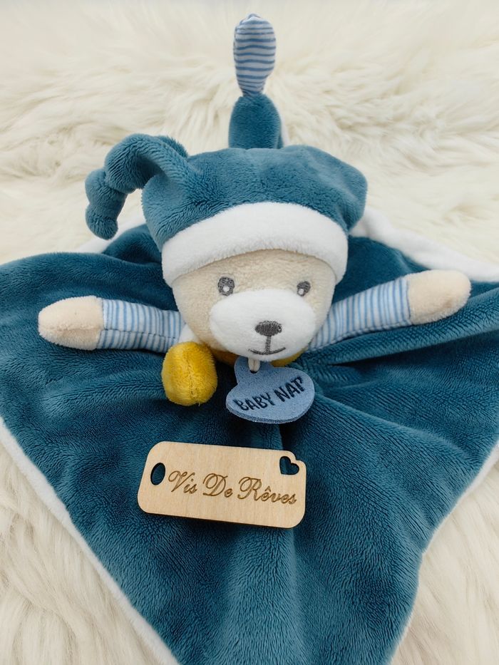 Doudou semi plat carré Ours Bonnet Polochon Baby Nat BN0739 - photo numéro 9
