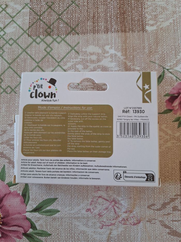 Bonjour ✴️Je vends cette paire de faux-cils neuf sous emballage ✴️De la marque p'tit Clown ✴️Idéal pour parfaire un joli déguisement ou pour parfaire son maquillage ✴️Noir et auto-adhésif pas besoin de colle et avec explicatif au dos de la boîte ✴️Mesurant 1,5cm de longueur de cils