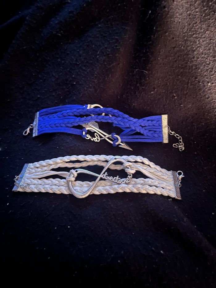Lot de 2 gros bracelets fantaisie bleu et blanc