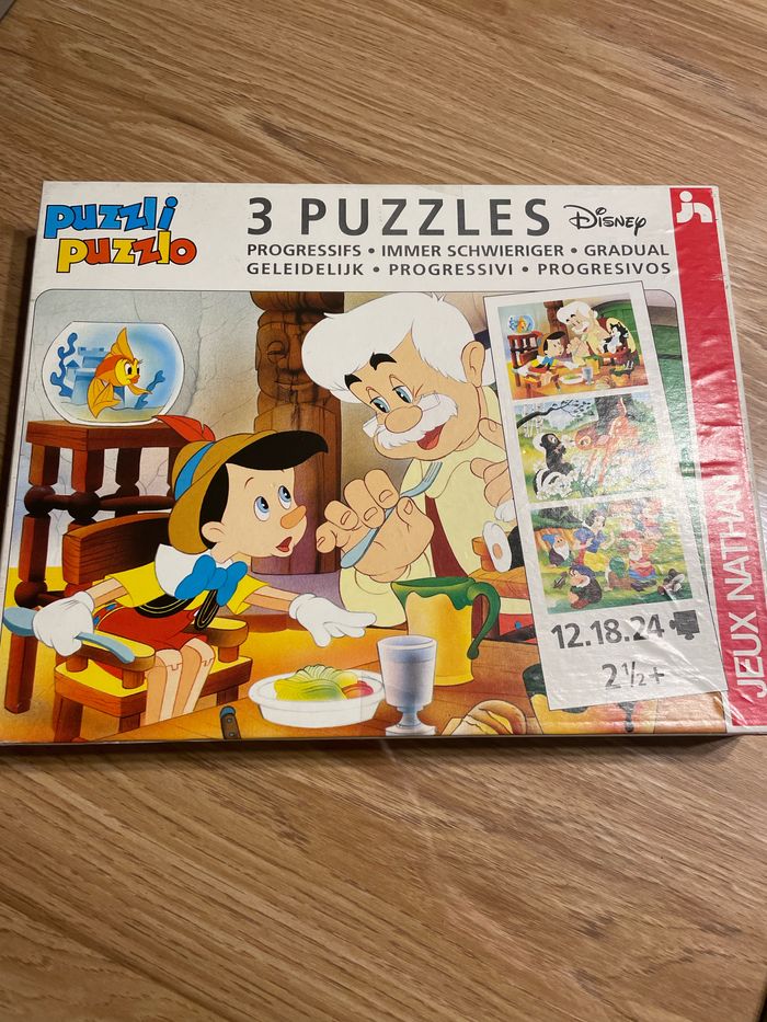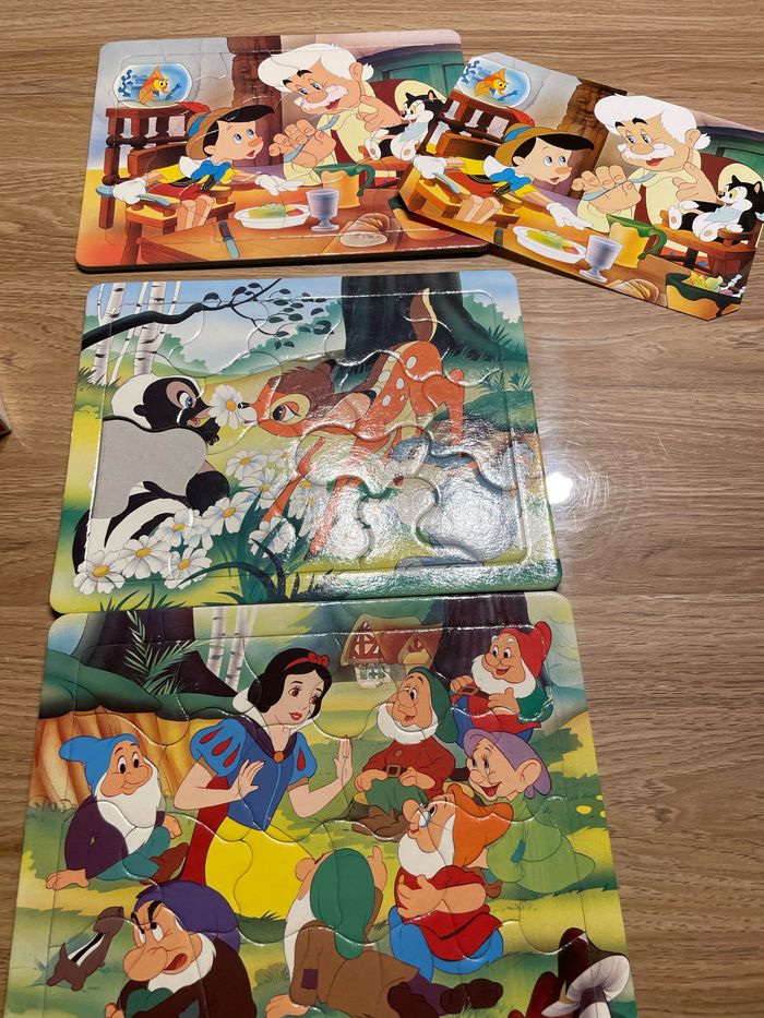 3 puzzles Nathan Disney - Pinocchio - Bambi (manque une pièce) - Blanche neige et les sept nains 21,5x 27 cm Vous achetez ce que vous voyez en photos 1993
