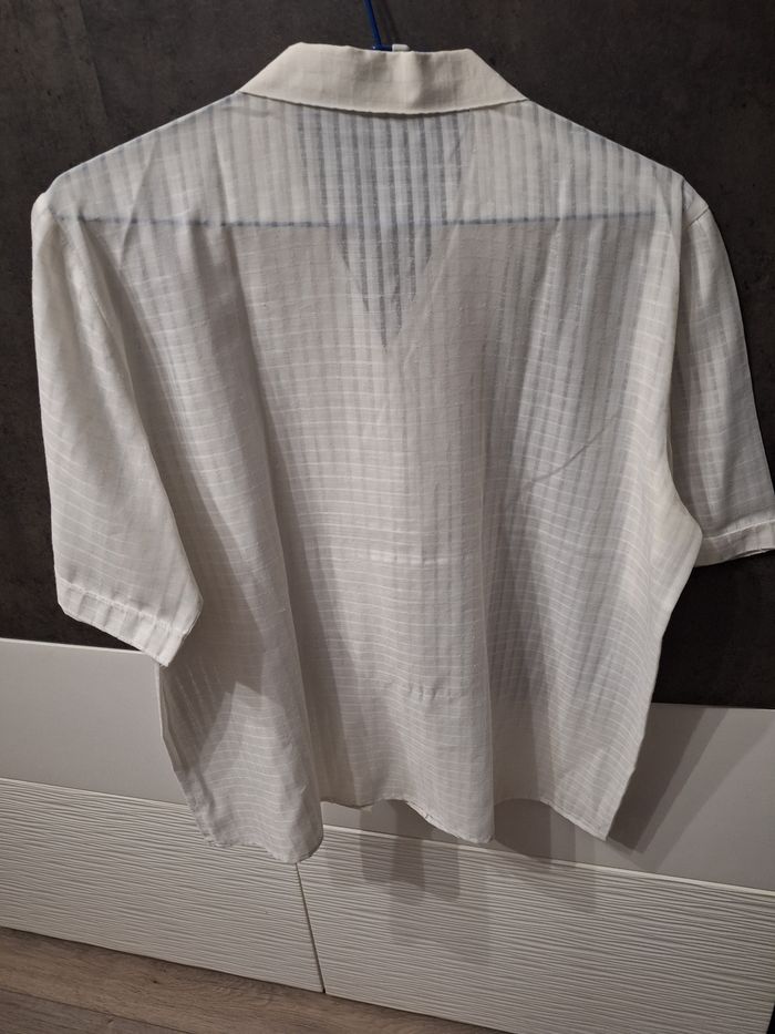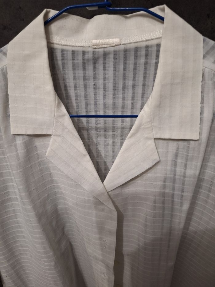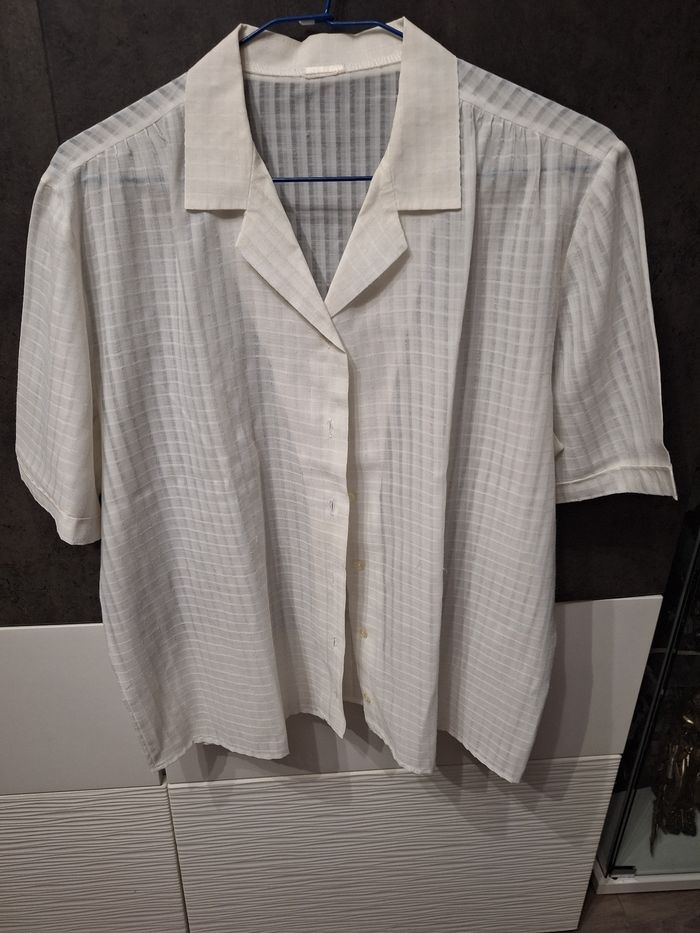 Jolie chemisier manches courtes blanc/écru motifs à carreaux transparents, taille 42, porté mais en très bon état