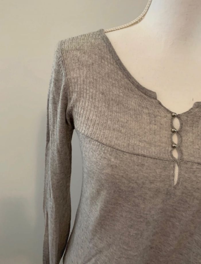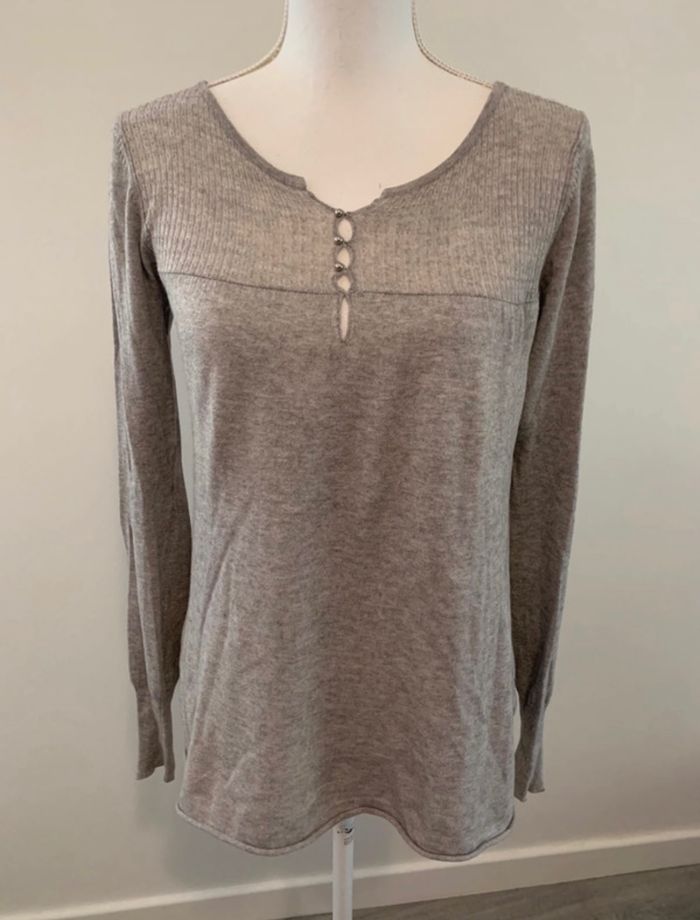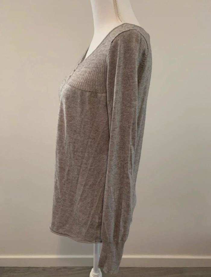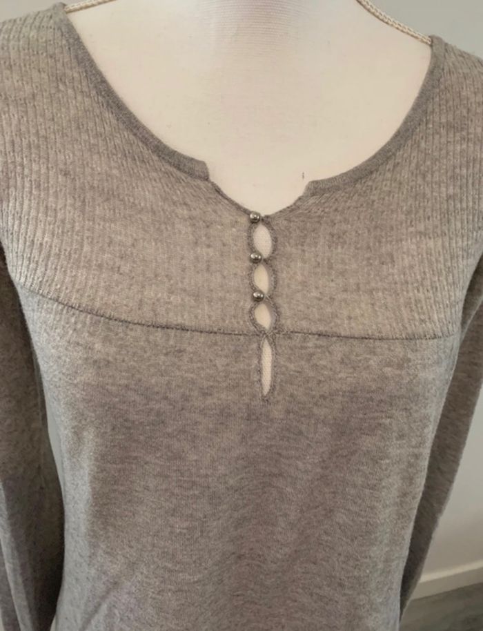 Pull - Excellent état - Chattawak - Taille 1 équivalent S 36 - Manches longues - Gris et argenté - Coton et cachemire - Ultra doux et chaud - Détails argentés au niveau du décolleté Dimensions: - 46cm niveau aisselles - 64cm de long