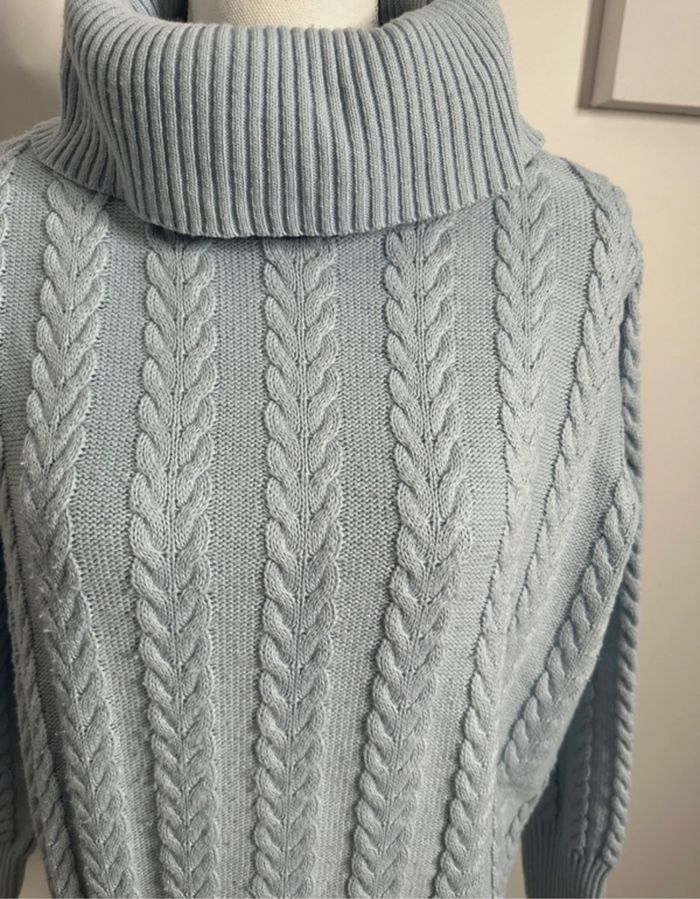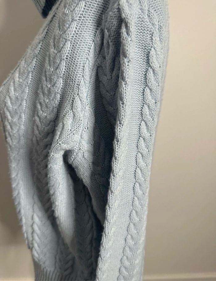Pull oversize en maille torsades col roulé bleu ciel Vintage T38 M - photo numéro 3