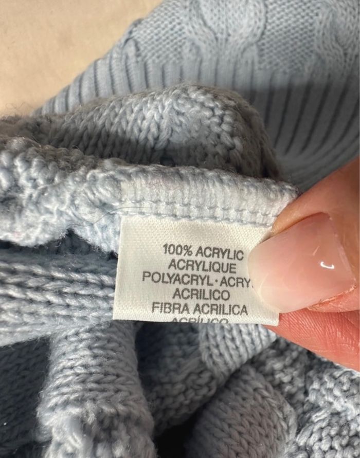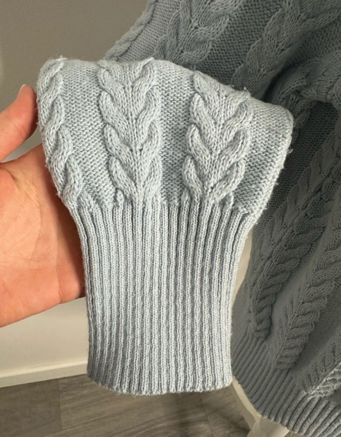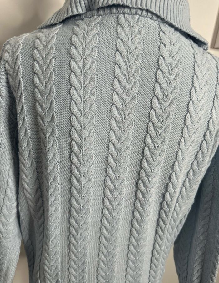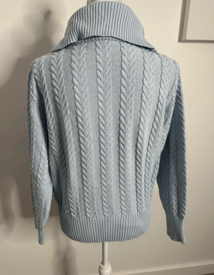 Pull oversize en maille torsades col roulé bleu ciel Vintage T38 M - photo numéro 9