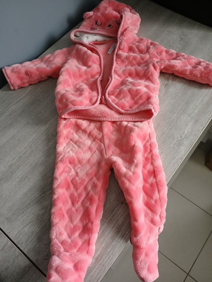 Ensemble bébé fille très bon état 3/6 mois Veste et pantalon rose avec coeur . Polaire