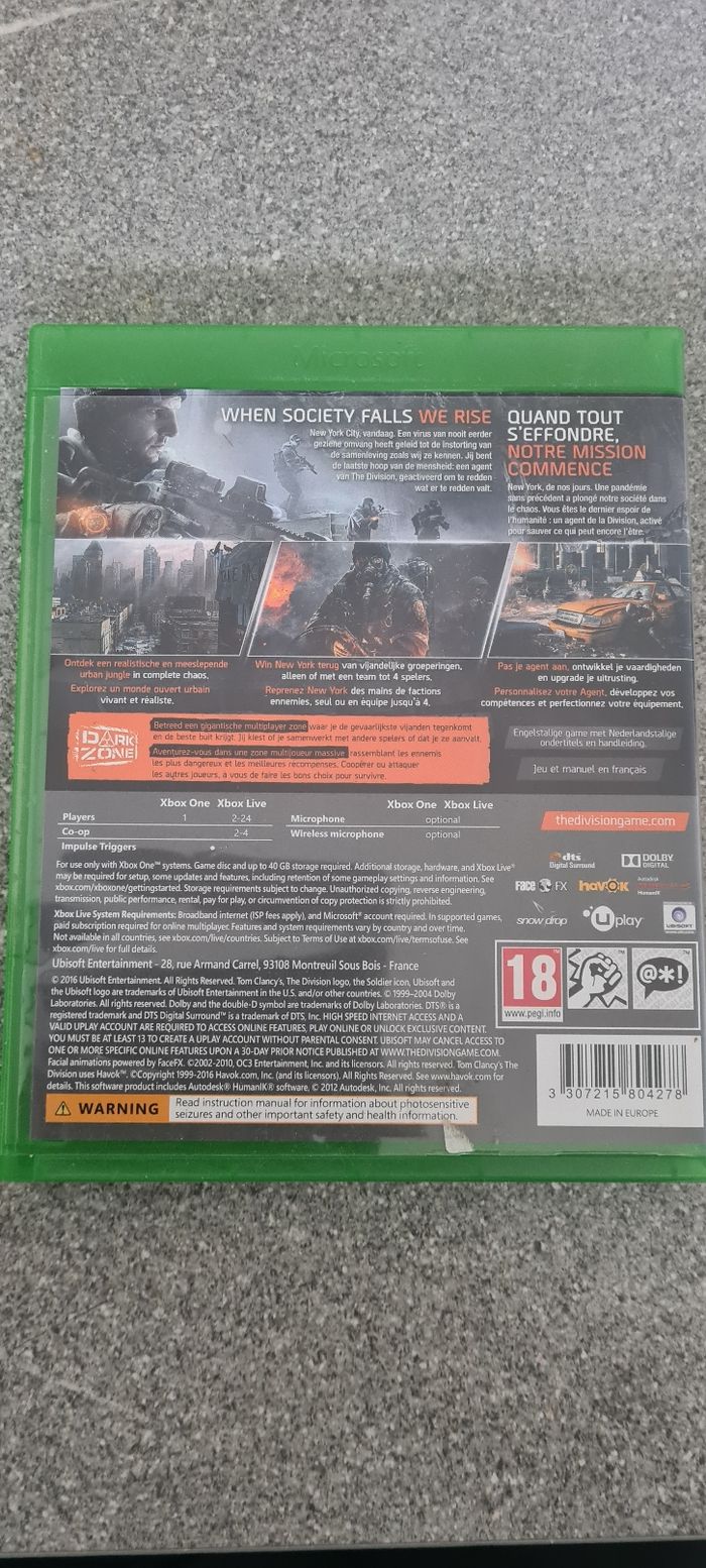 Jeu xbox, the Division CD nickel sans trace d'utilisation