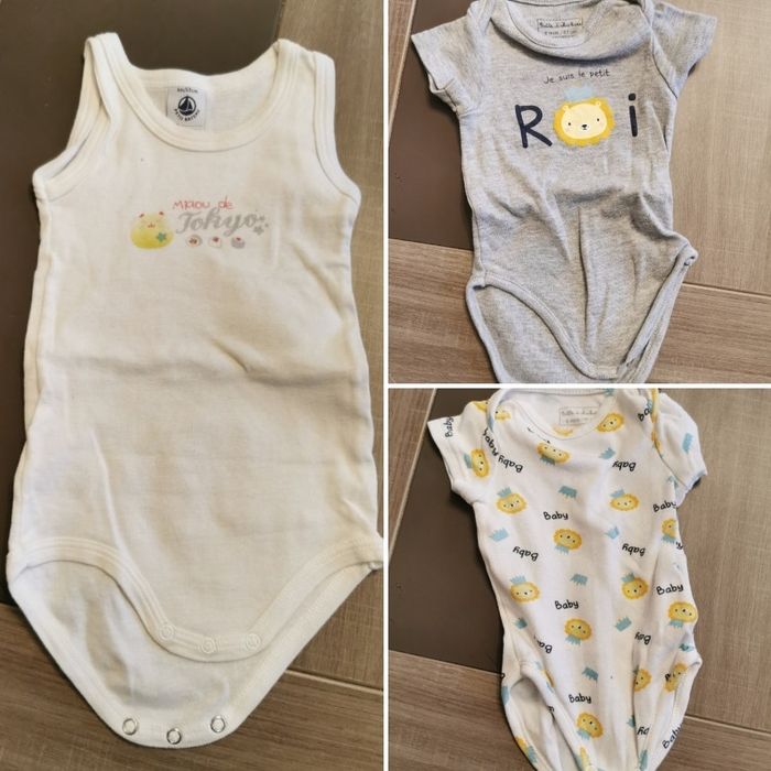 Lot de 3 bodys manches courtes, taille 6 mois, en très bon état
