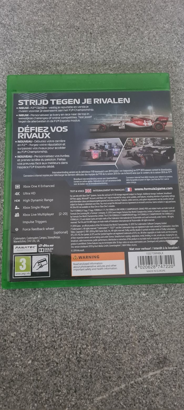 Jeu xbox. Formula 1 , 2019 CD nickel sans trace d'utilisation