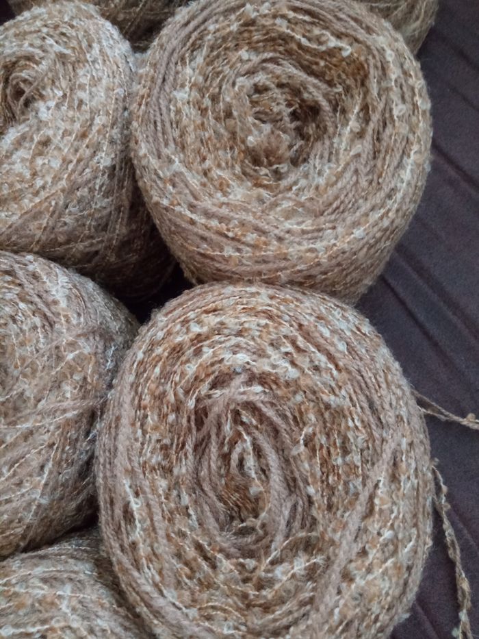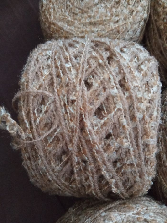 Lot de 7 Pelotes Fantaisies (550g) Couleur: Marron et Beige 1 fil fin fantaisies aspect bouclettes fines 1 autre fil fin simple au total 550g Aiguilles N°2-2,5 Lot en parfait état
