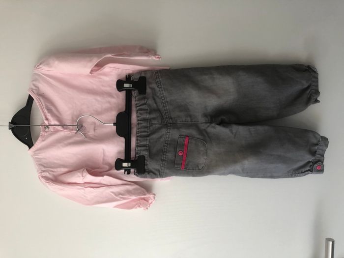 Joli ensemble fille composé d'un haut manches longues et d'un pantalon avec taille ajustable Motif chat et fleurs Marque Tissaia (haut) et Orchestra (bas) Taille 18 mois, 81cm