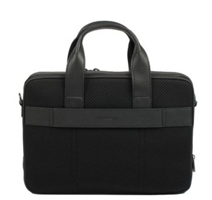 Porte document Lacoste Soft Mate en cuir grainé noir – Matière : cuir grainé mat noir – Dimensions : L35 x H25 x P6 cm – Emplacement pour ordinateur 14’’ ou documents – 1 poche zippée – 1 poche plaquée zippée et une poche smartphone à l’intérieur. – 2 poignées de transport – Bandoulière amovible Valeur: 265 euros État neuf jamais servi dans son emballage d’origine