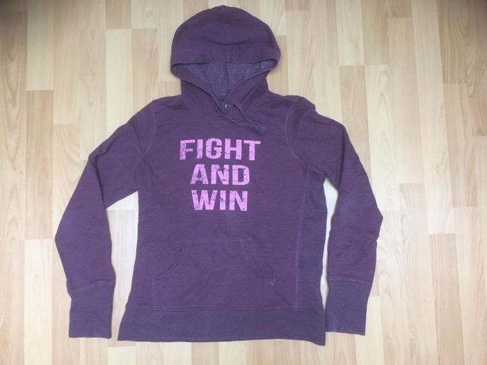 *** BAISSE À 3€50 *** Sweat à capuche Kiabi, noté Taille L mais taille plutôt M, vendu 5€. Motifs d’origine, coloris plutôt « prune », plus joli en réel !!
