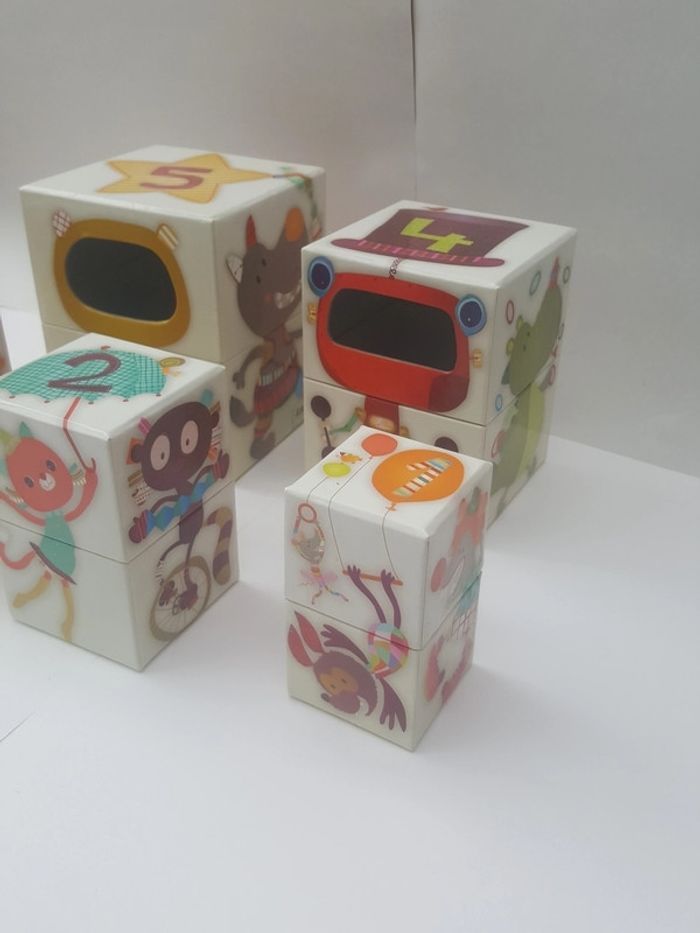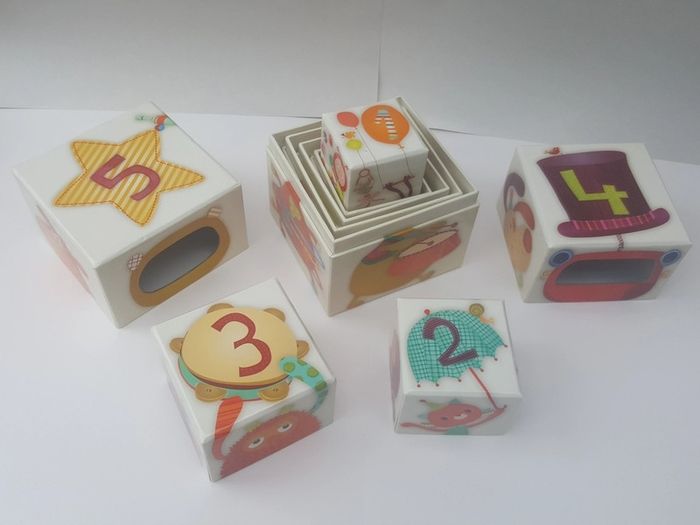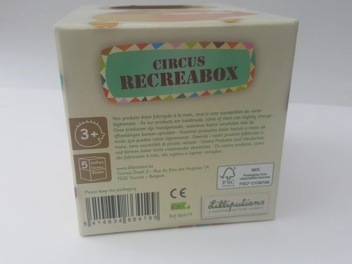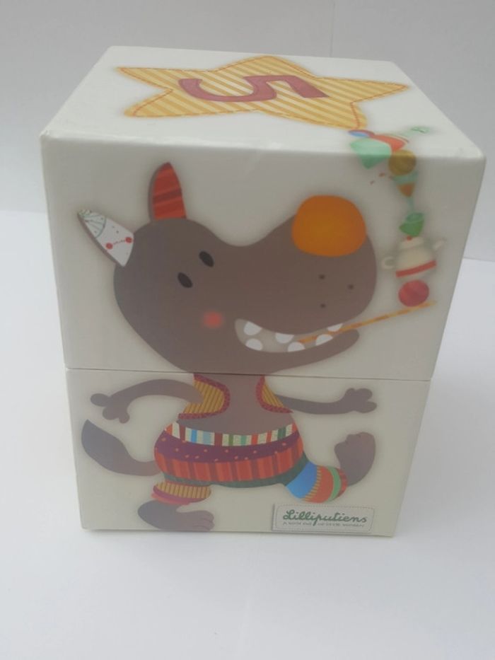 Circus récréabox de la collection Lilliputiens. Style poupées gigognes. Cube à empiler. En parfait état, comme neuf