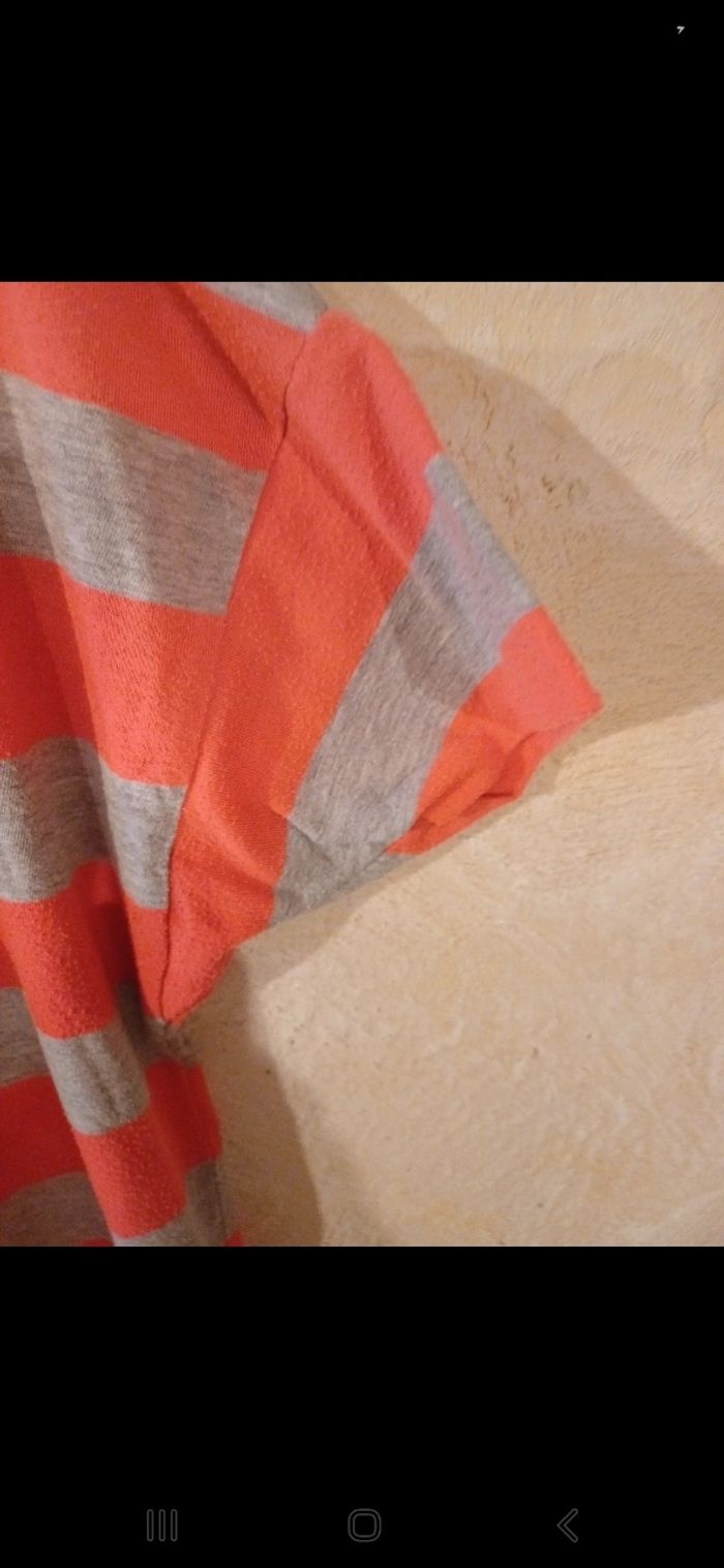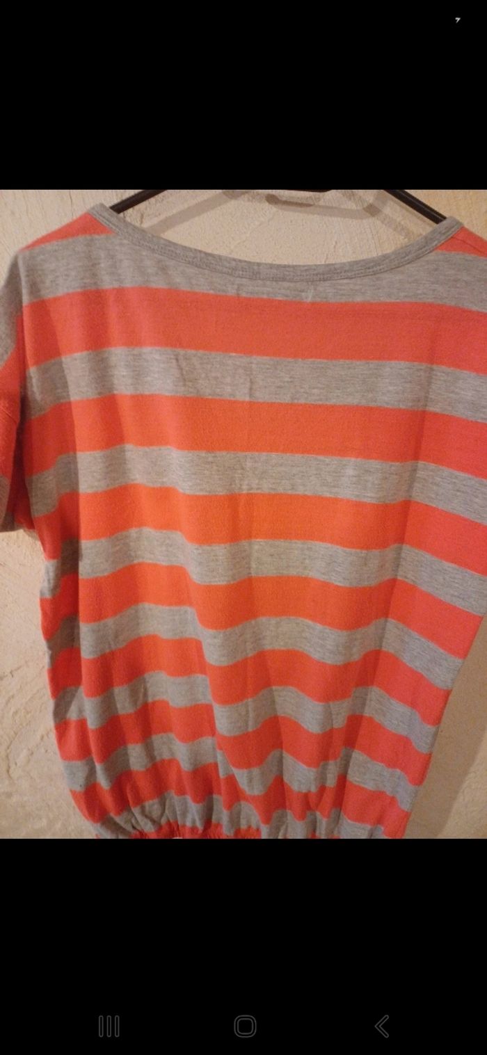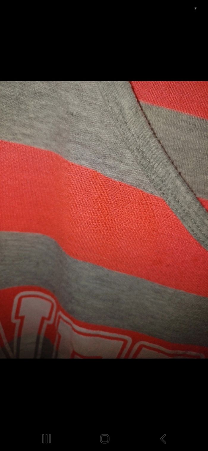 T.shirt manches courtes à rayures avec inscription à l avant. Tissu usé par les lavages ( voir photo)