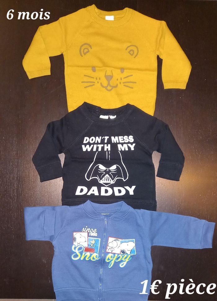Lot vêtements 6 mois garçon. Prix sur les photos Possibilité de faire en lot