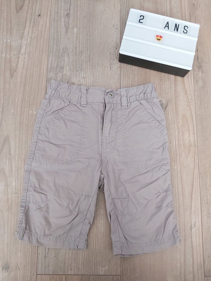 bermuda kimbaloo 2 ans gris, taille élastique, fermeture pression. tbe