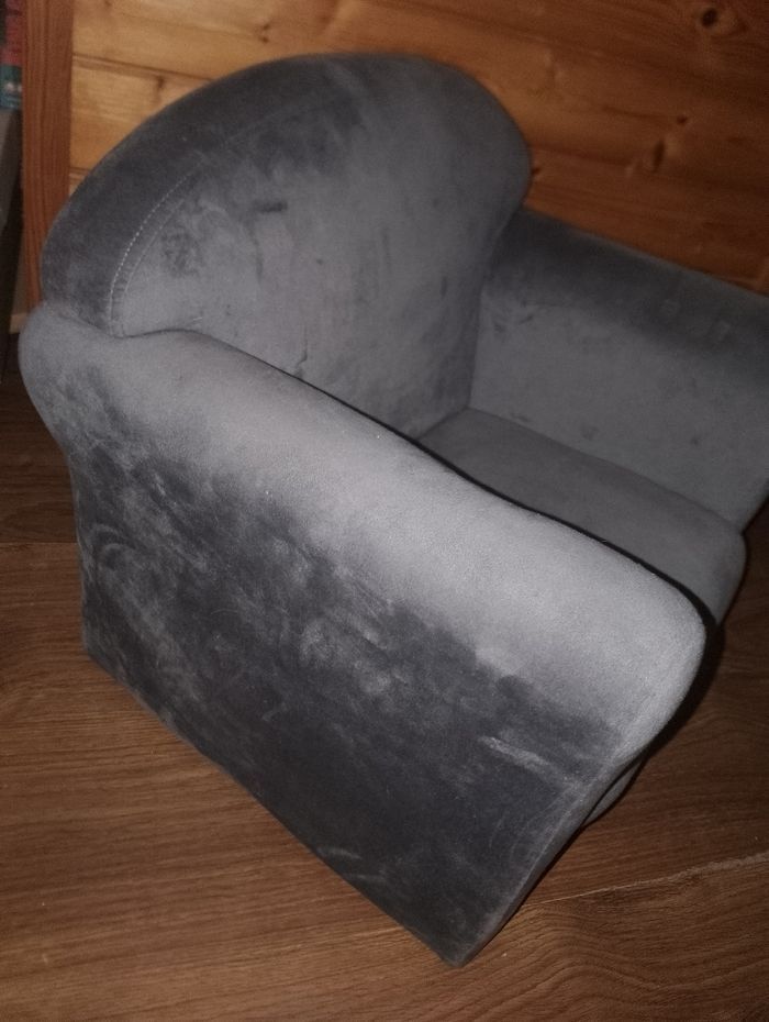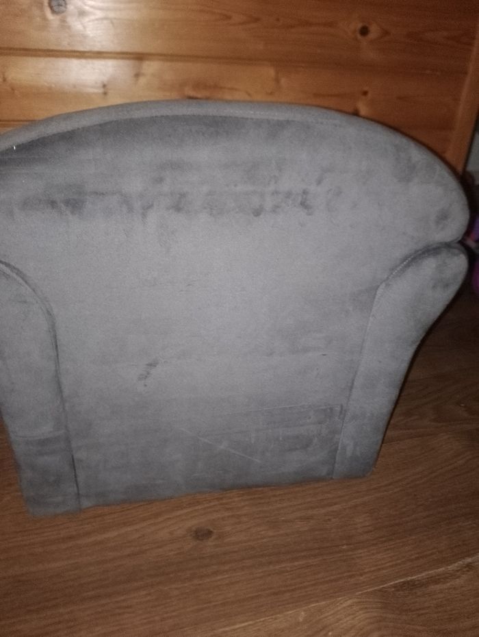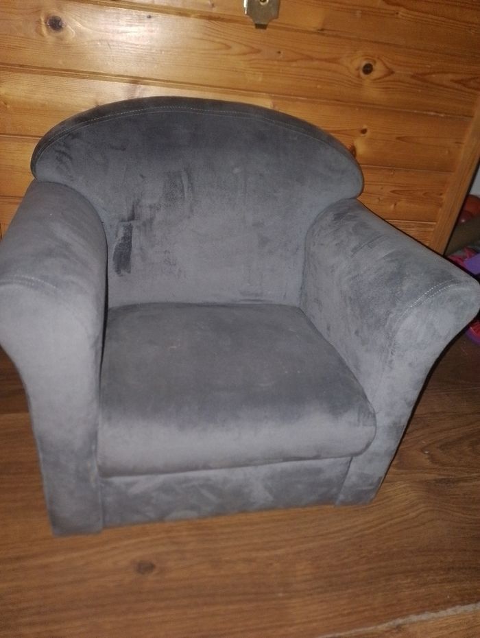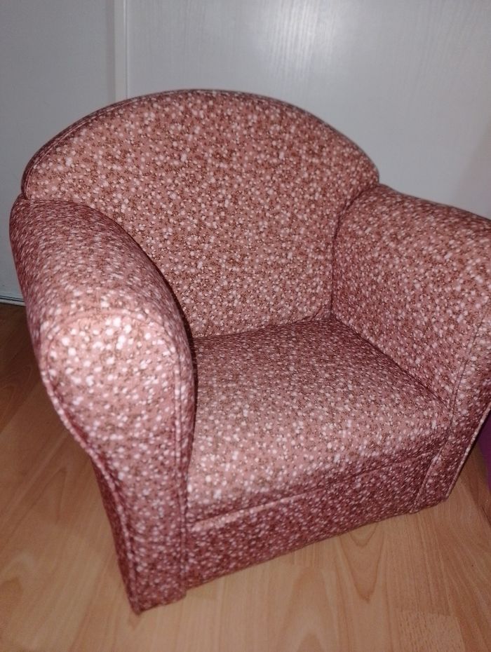 Fauteuil enfant gris Juste petites déchirures sur le fond Également dispo en rose à motif 90euro Idéal pour mettre dans un salon, salle de jeu où chambre, idéal cadeau de sainte Catherine, saint Nicolas, Noël, anniversaire, baptême.....
