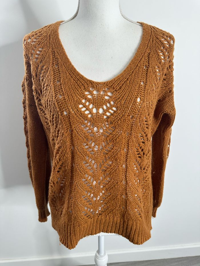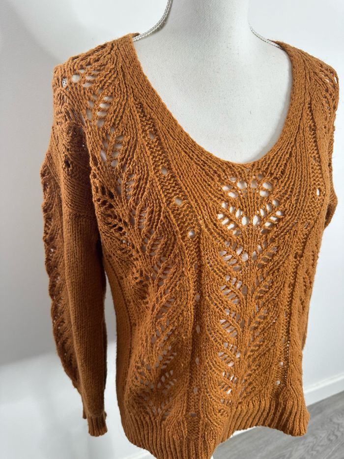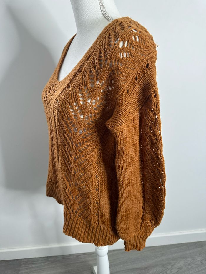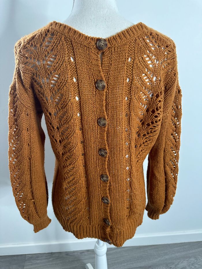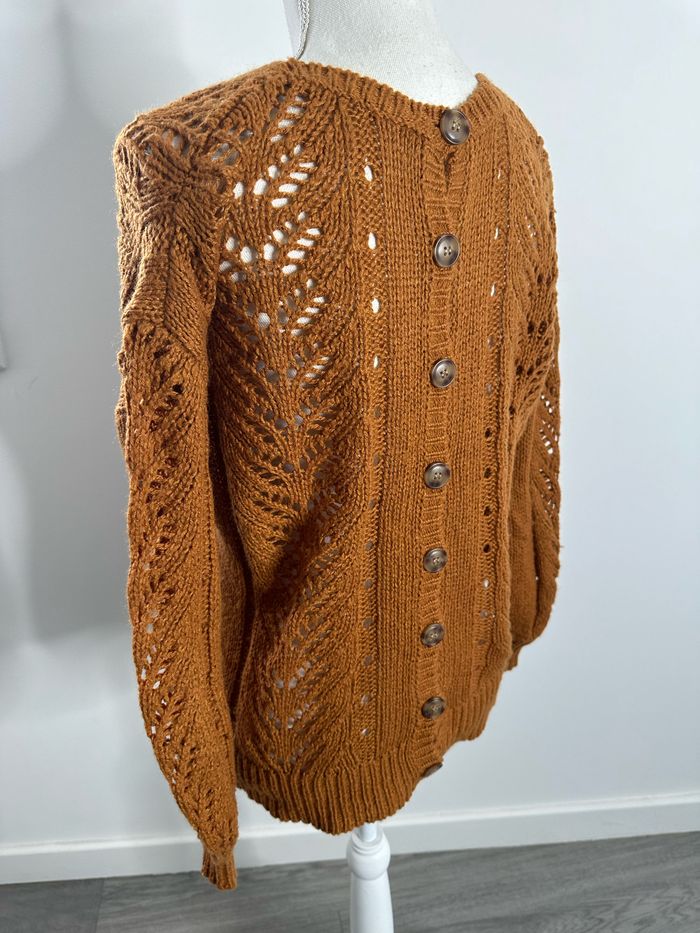 Pull cardigan oversize en maille ajourée Camel Vintage T40 L - photo numéro 5