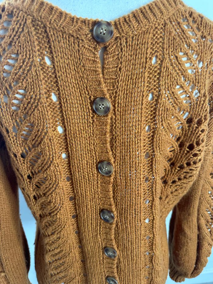 Pull cardigan oversize en maille ajourée Camel Vintage T40 L - photo numéro 6