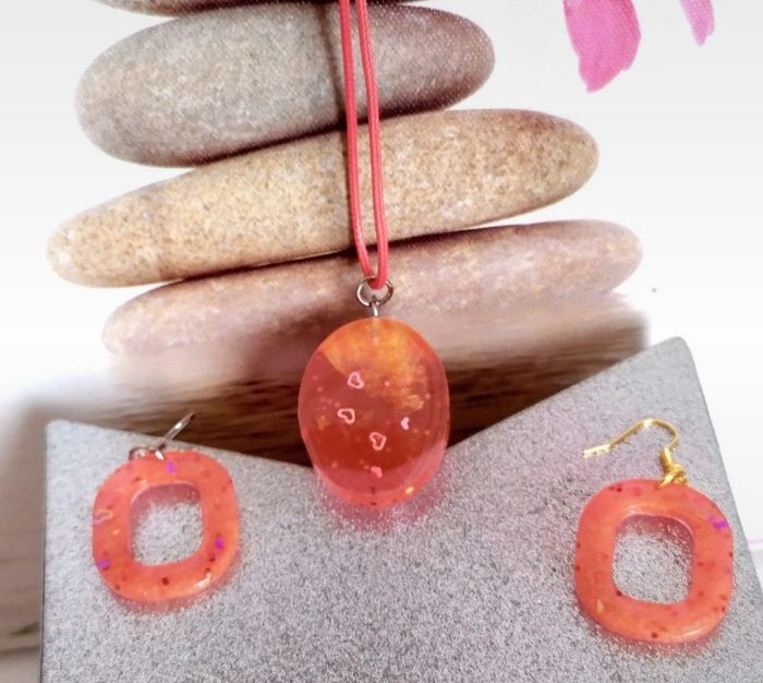 Vends un lot de 2 bijoux orange brillant et pailleté : une paire de boucles d'oreilles et 1 collier assorti. Matière epoxy. Parfait pour offrir un cadeau. D'autres articles disponibles dans mon dressing, voir mes autres annonces pour économiser sur les frais de port. . .. #bijoux #orange #doré #brillant #pailleté #pendentif #Ensemblebijoux #blanc #doré #colliers #bouclesdoreilles #boucle #paire #Ensemble #Enfant #fille #cadeau #coeur #epoxy #aid #3aid #Jewel #bijou #Chain #Kette #Kolczyk #Arete #bijoux #Set #Colocar