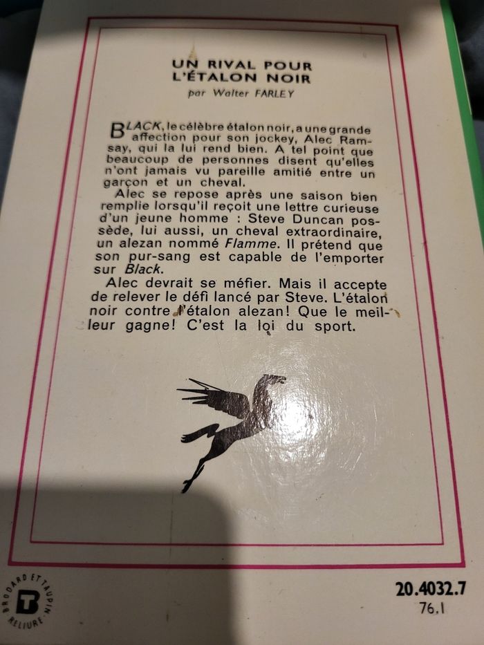 2 livres l'étalon noir Sur les traces de l'étalon noir Un rival pour l'étalon Noir Bibliothèque verte Possibilité de les vendre à l'unité