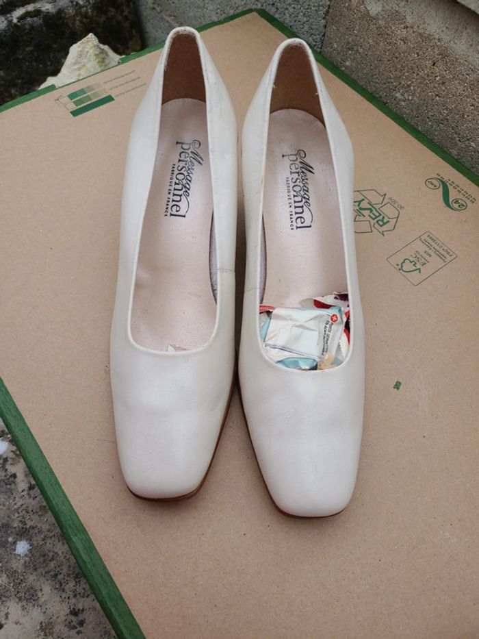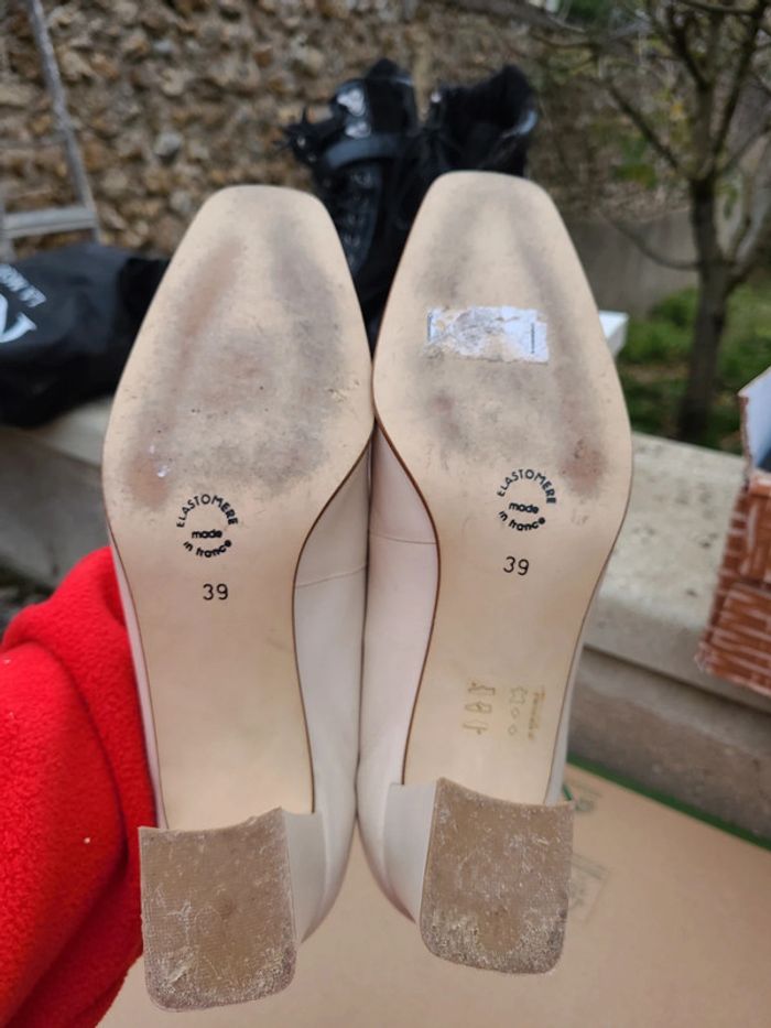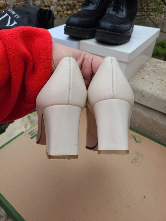 ⬇️mes autres annonces de chaussures👉 #cg89chaussures 😁 réductions activées des 2 articles ! des escarpins beige avec des talons carrés d'environ 5 cm de hauteur. peu porté, en bon état, taille 39, marque message personnel #messagepersonnel #escarpin #talon #taille39 #pointure39
