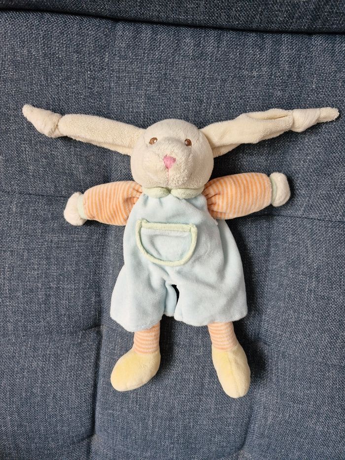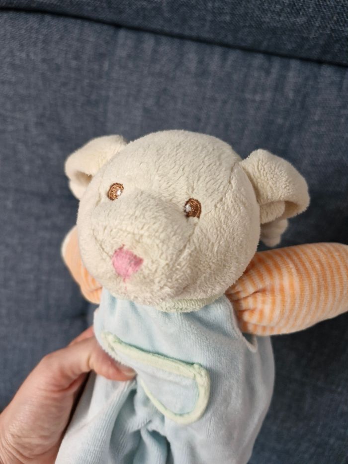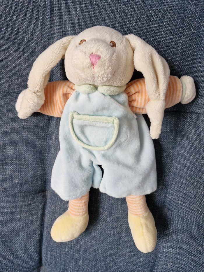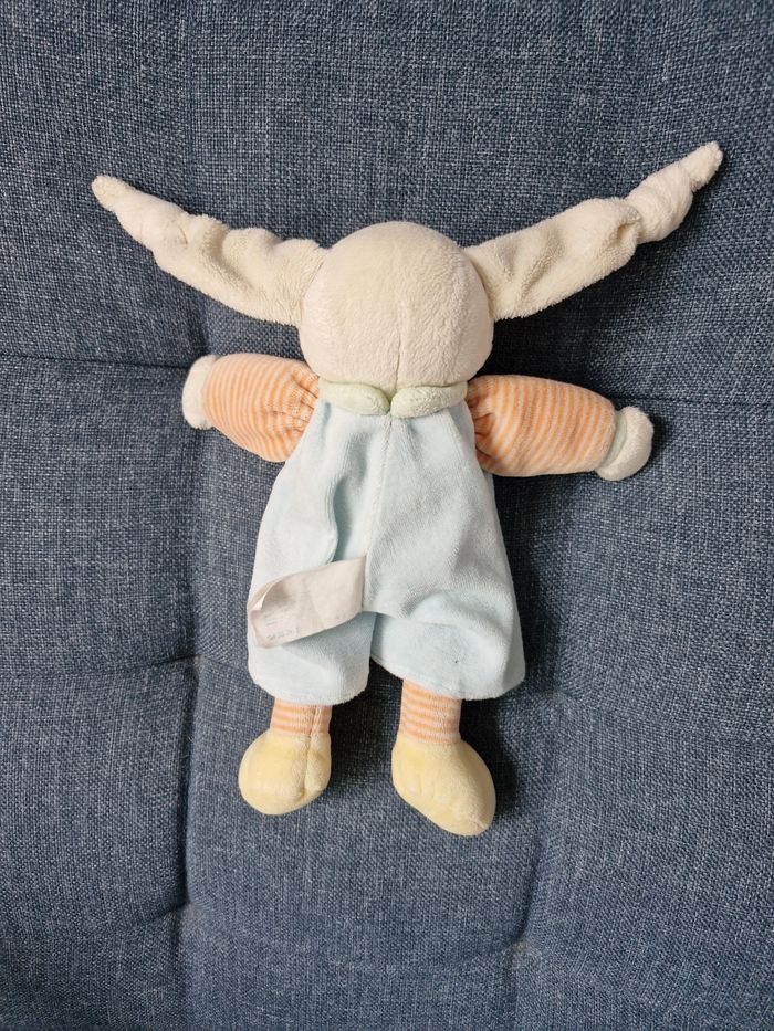 Couleurs pastelles. Matière toute douce. Pas de tâches ni de trous. Parfait état, juste lavés à plusieurs reprises 😉 Hauteur : 27cm environ