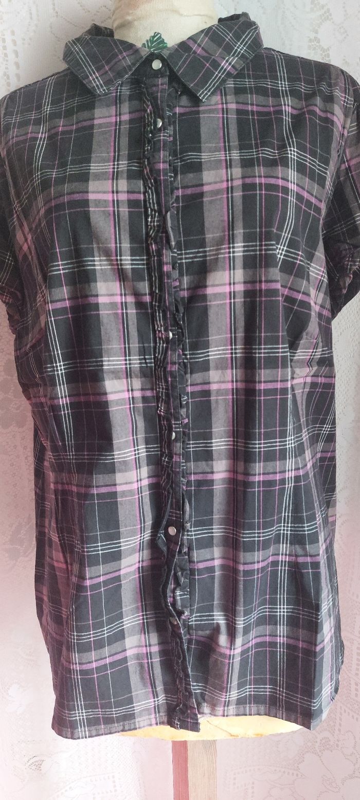 Chemise à carreaux style vintage 🖤 Très bon état, comme neuve ! 📏 Taille 46/48 - parfaite pour un look à la fois décontracté et élégant ☁️ Confort assuré grâce à sa composition : 97% coton, 3% élasthanne, doux et légèrement stretch Mesures : Aisselle à aisselle : 66 cm Épaule à épaule : 43 cm Longueur : 73 cm Cette chemise sera parfaite pour apporter une touche de caractère à votre garde-robe. Avec ses motifs à carreaux noir, gris et rose, elle peut se porter en toute saison ! Ne la laissez pas passer.