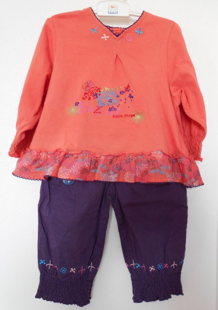 Ensemble pour fille composé d'un T-shirt à manches longues et d'un pantalon Marque Sucre d'orge Taille 18 mois Très bon état, porté 2 ou 3 fois